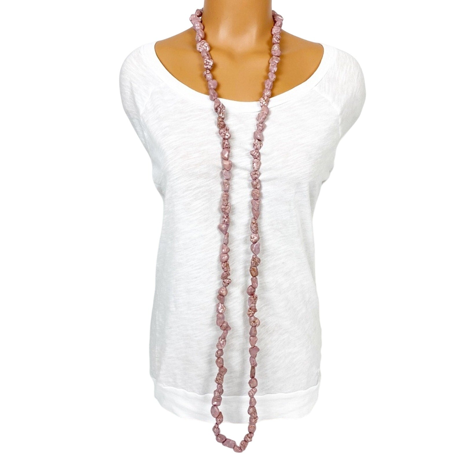 62" long strand of pink turquoise stones NECKLACE statement jewelry
