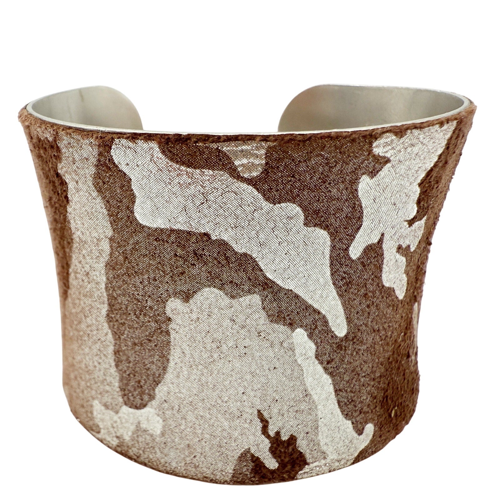 AV Max brown & silver leather wrapped Concave Cuff Bracelet camo jewelry NY
