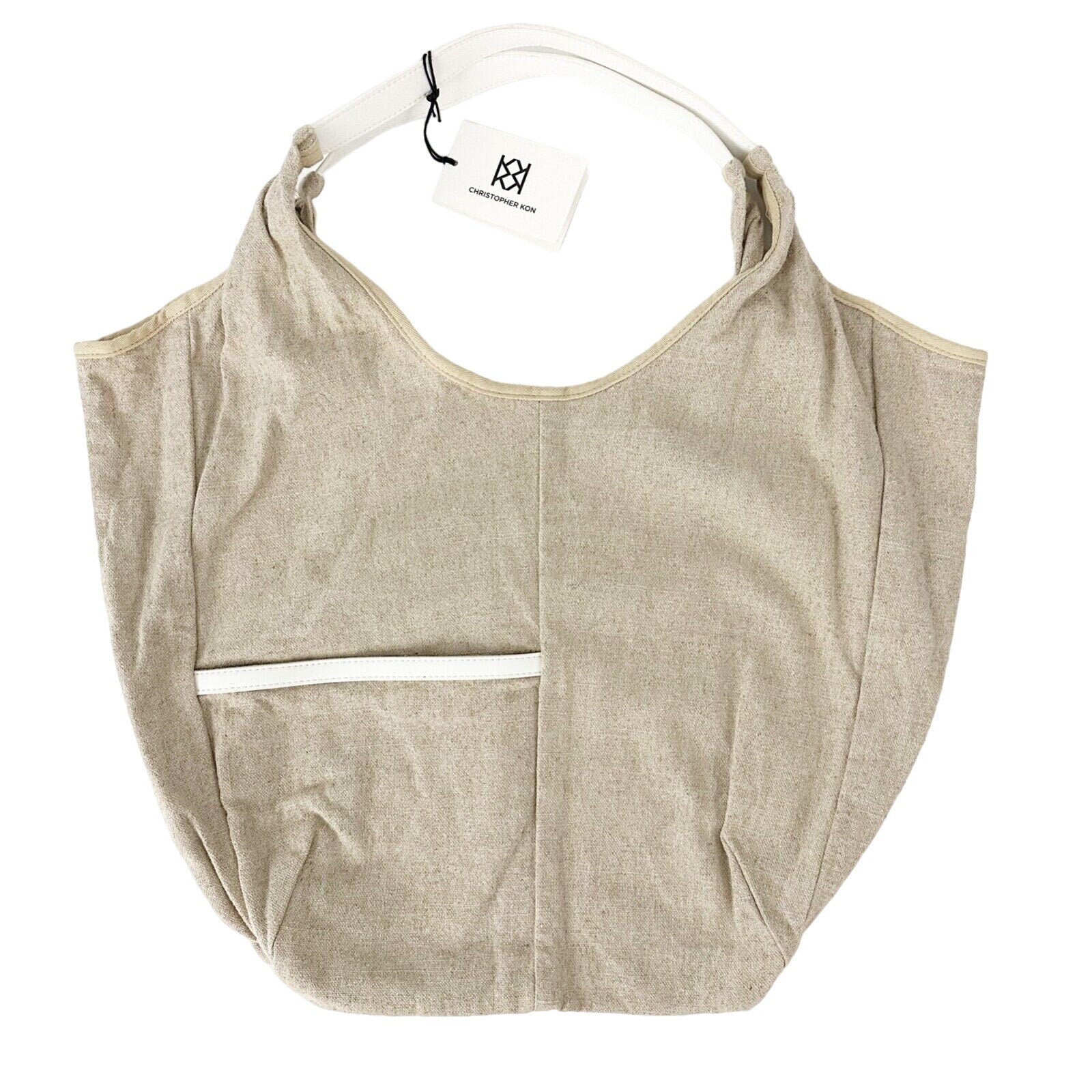 Christopher Kon natural linen & white Tote Bag daily carryall purse handbag NEW