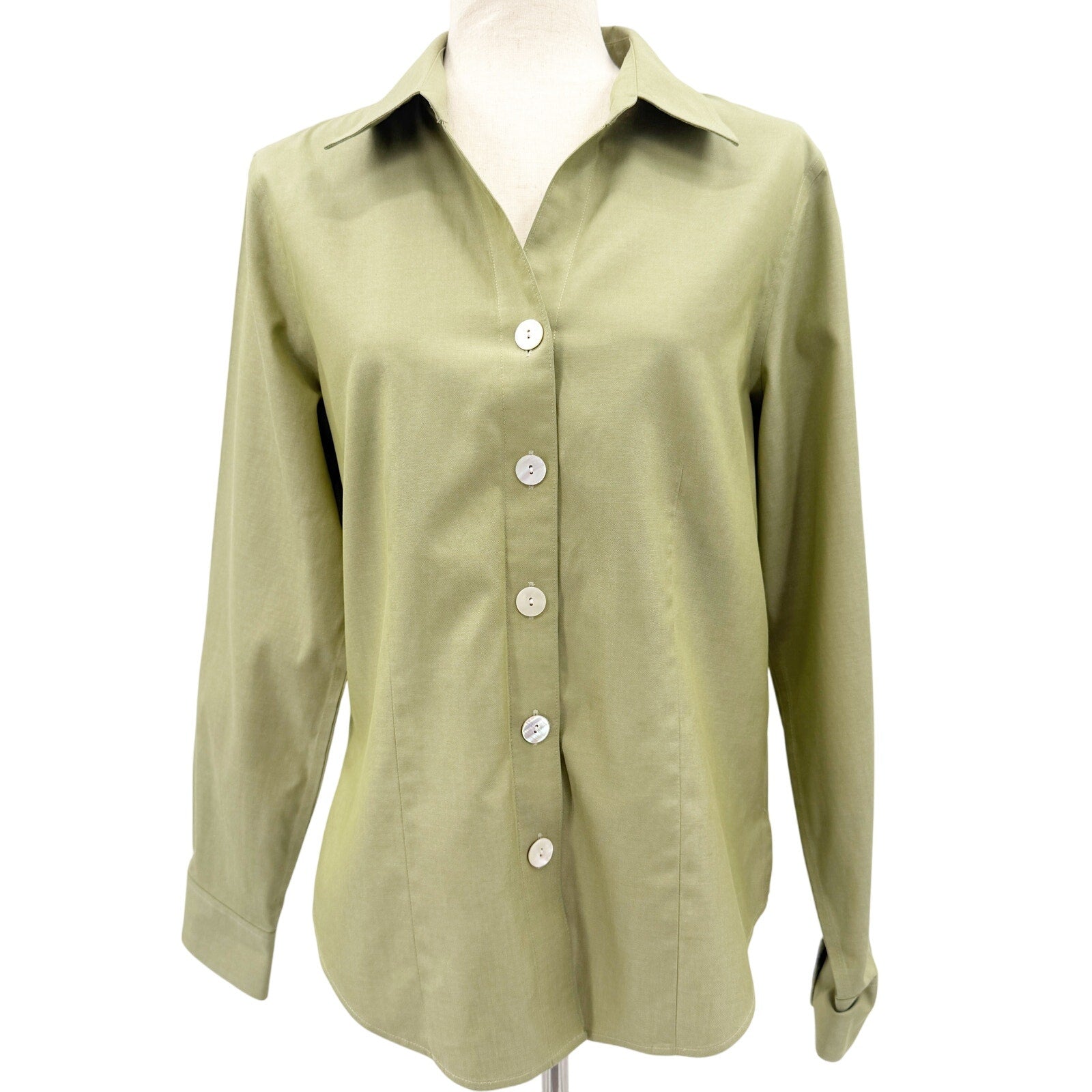 Coldwater Creek sage green Button Down Top blouse women's MEDIUM work office