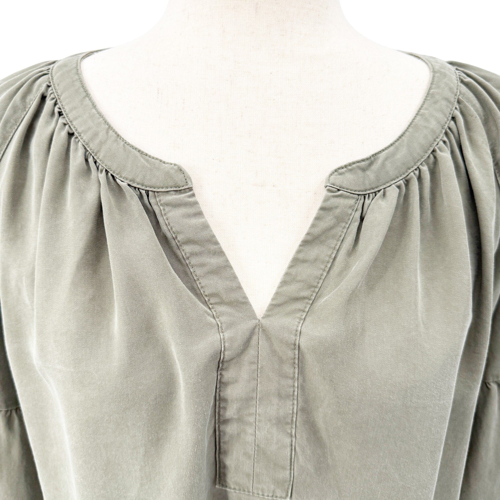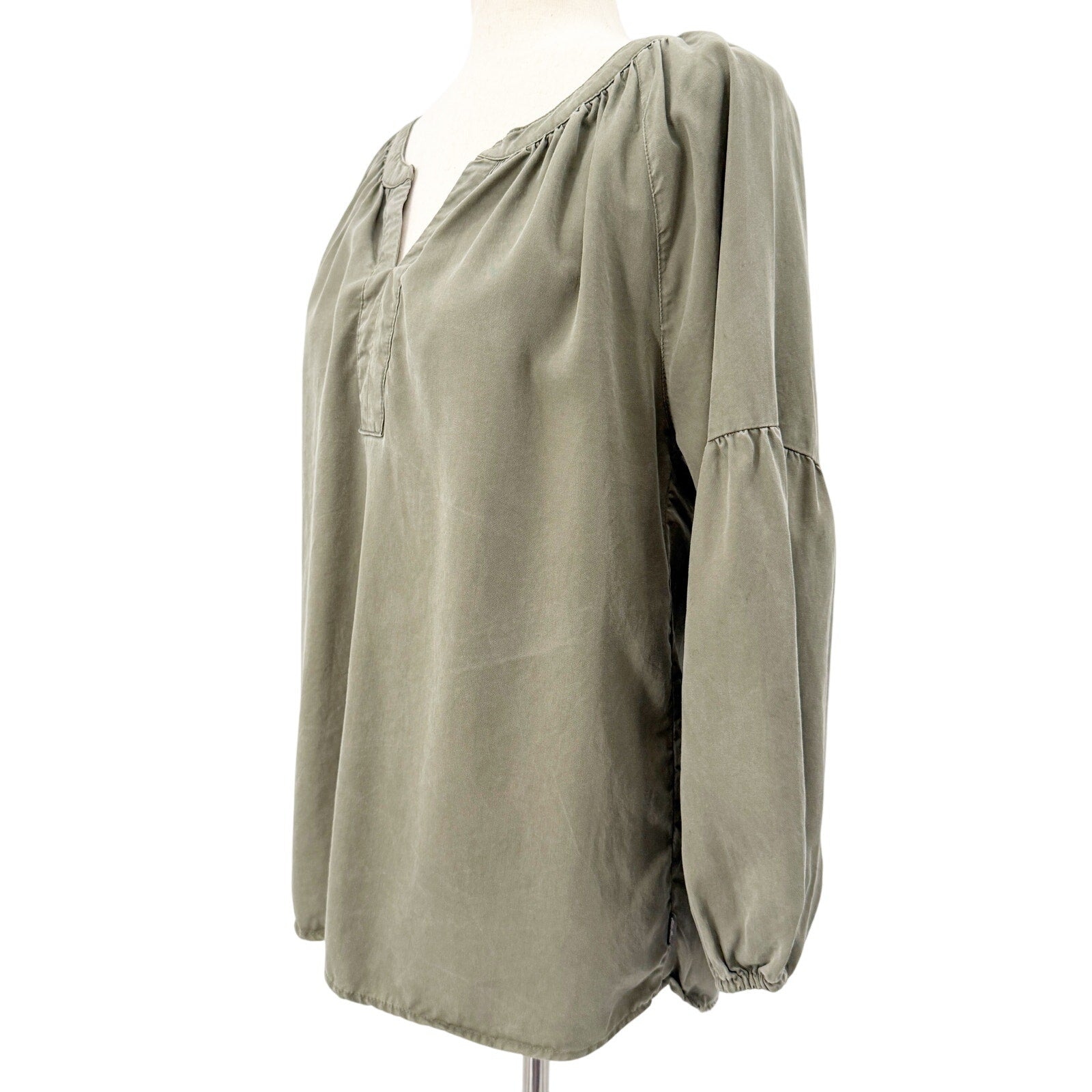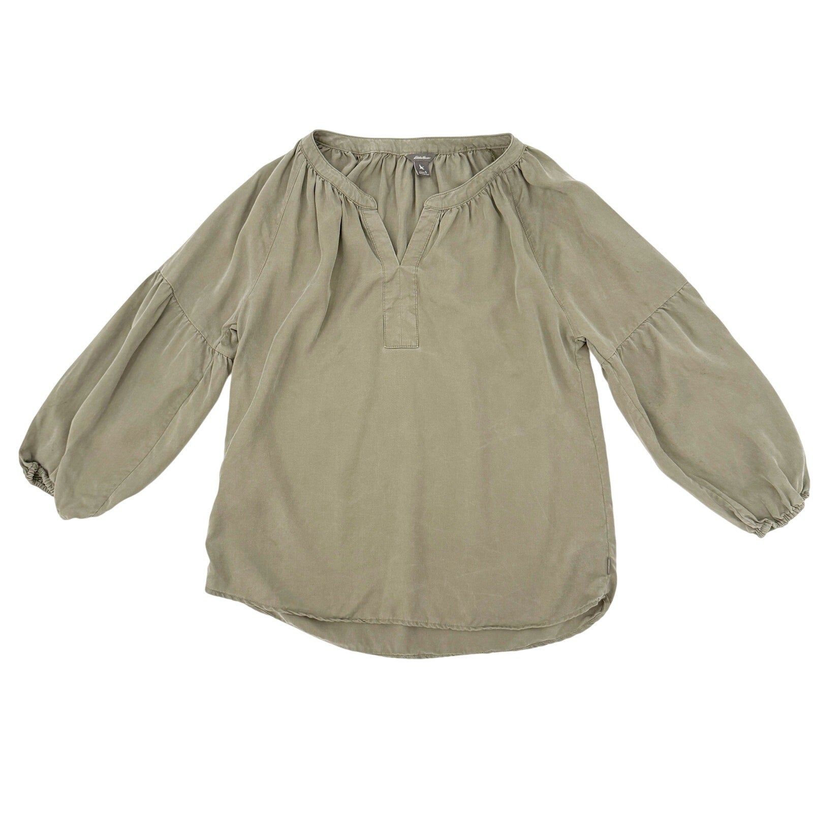 Eddie Bauer olive green Peasant Blouse Top women's SMALL 3/4 sleeves