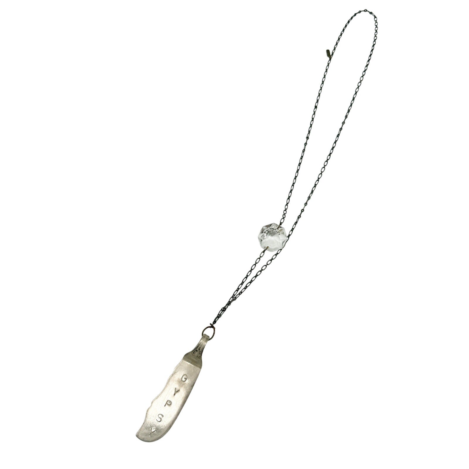 farrah b chain link Necklace large rhinestone vintage GYPSY knife pendant