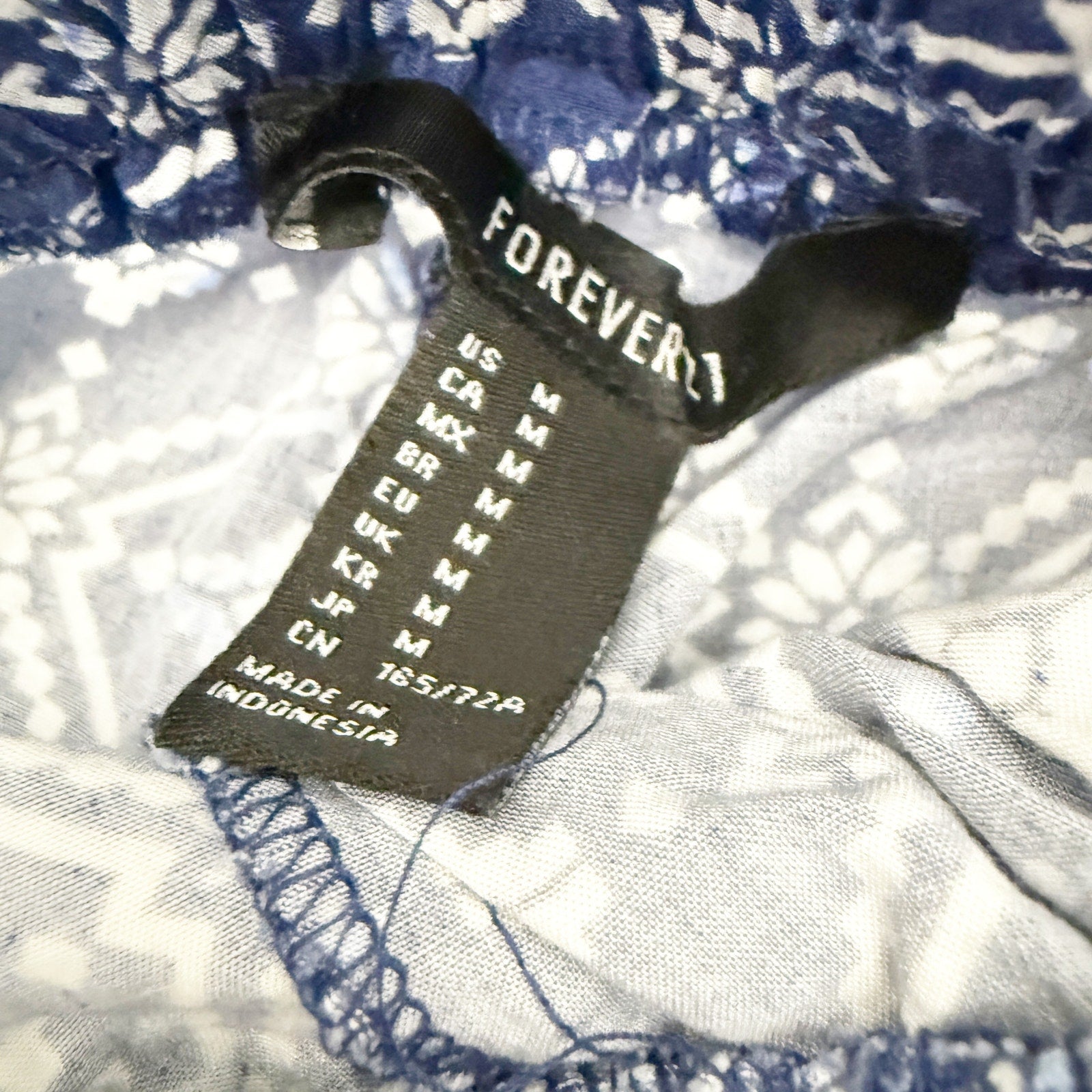 Forever 21 blue & white pattern loose Pants joggers juniors MEDIUM pockets