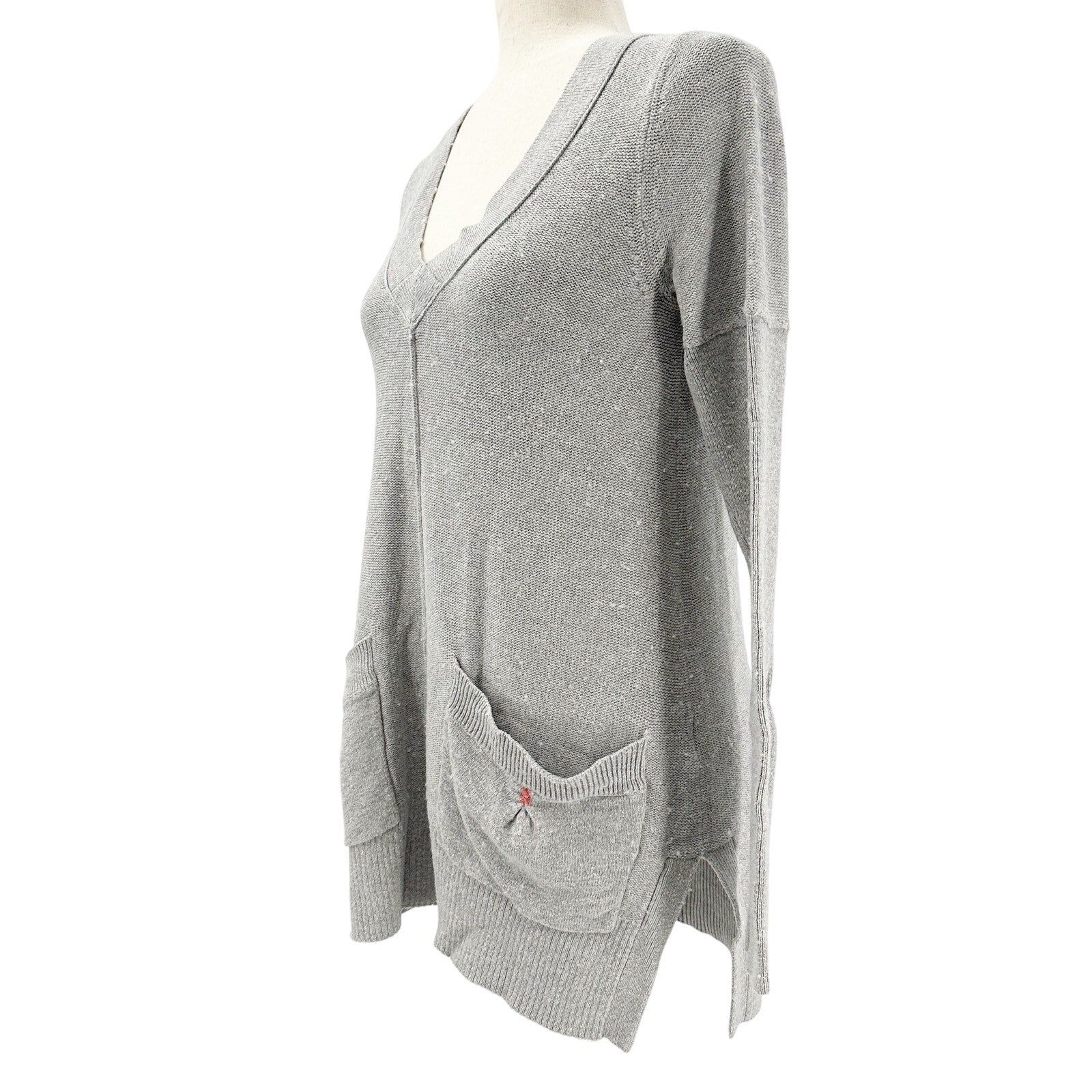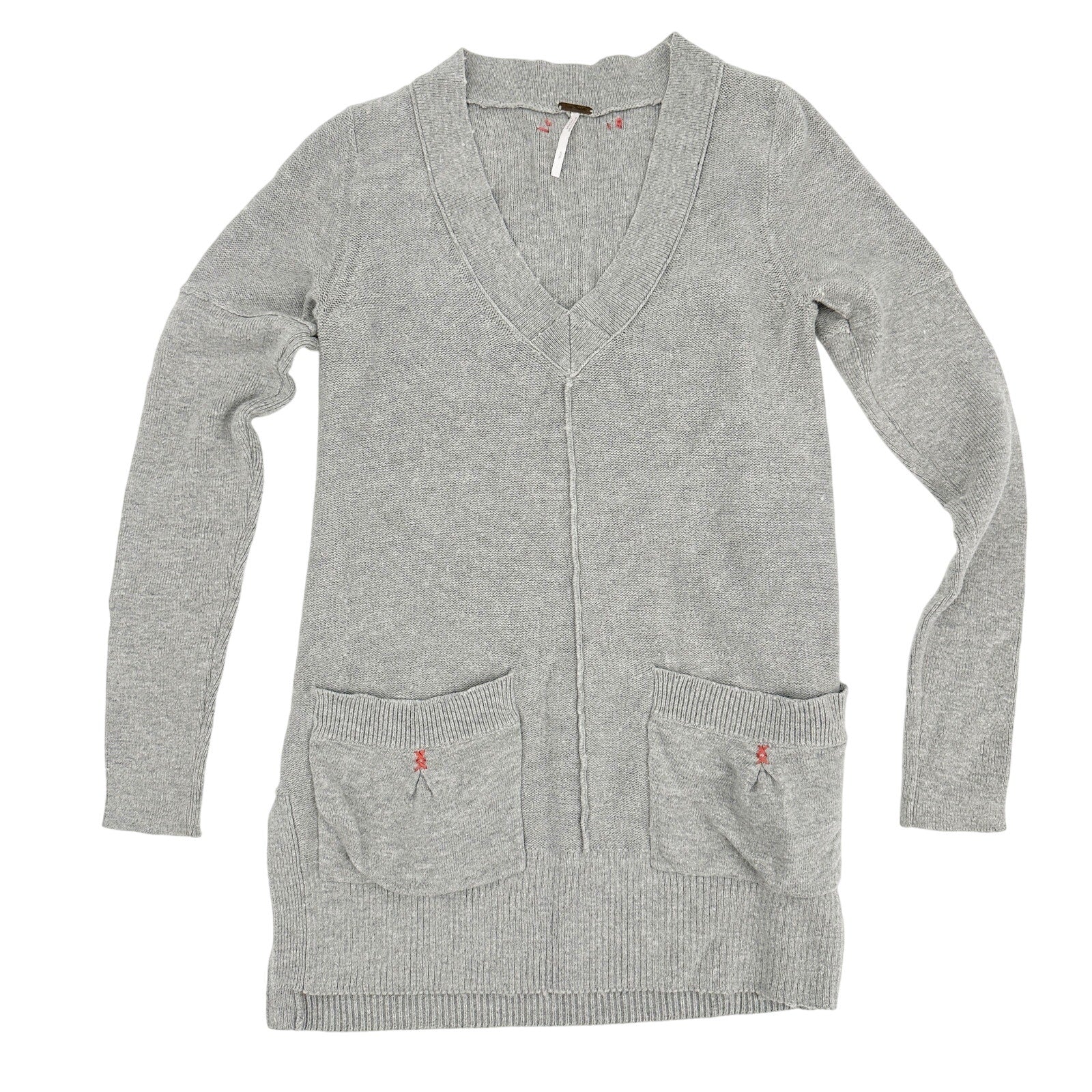Free People v-neck gray Sweater Top with front pockets women's SMALL normal size