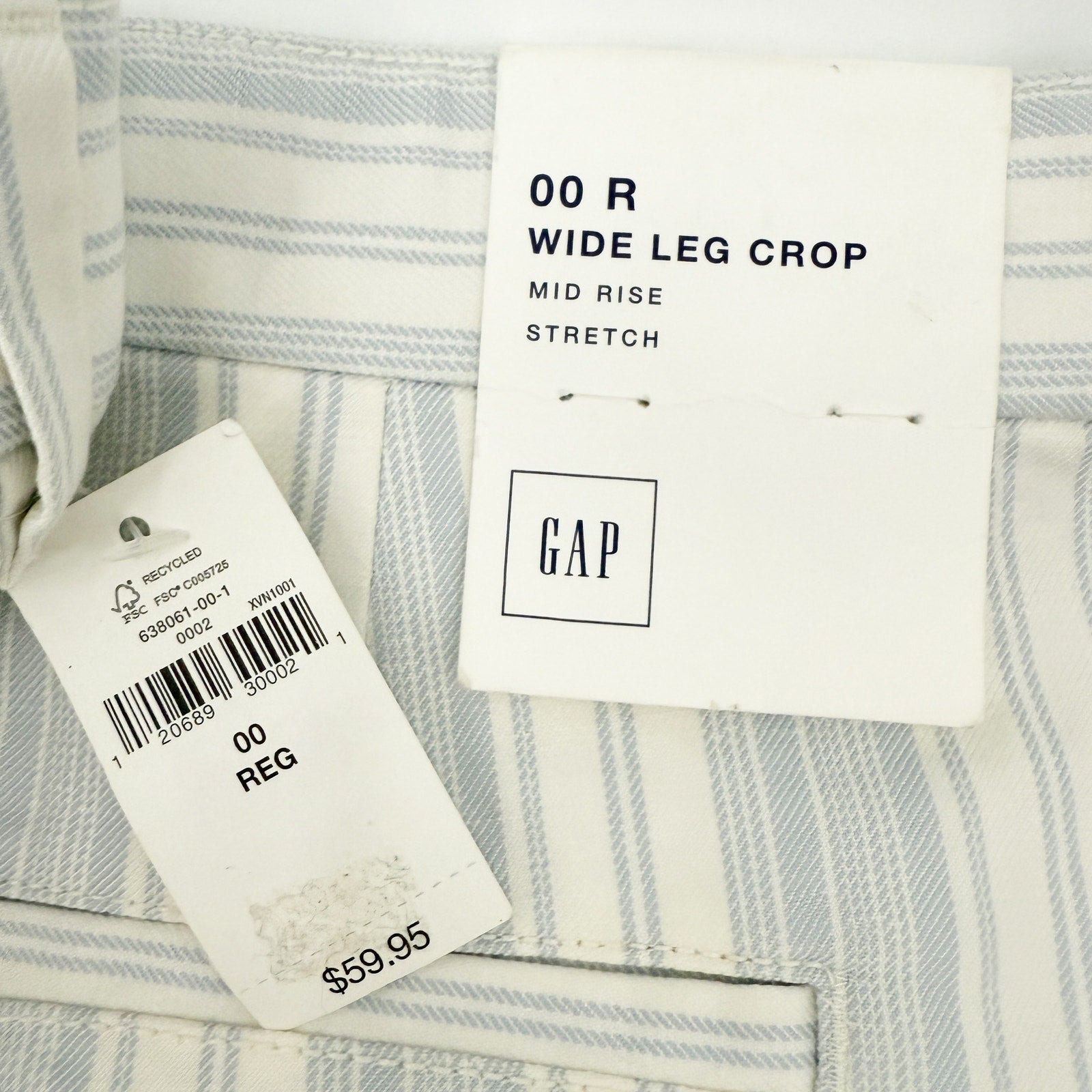 GAP blue & white striped Wide Leg Crop Pants 00 R extra small XXS mid rise NEW