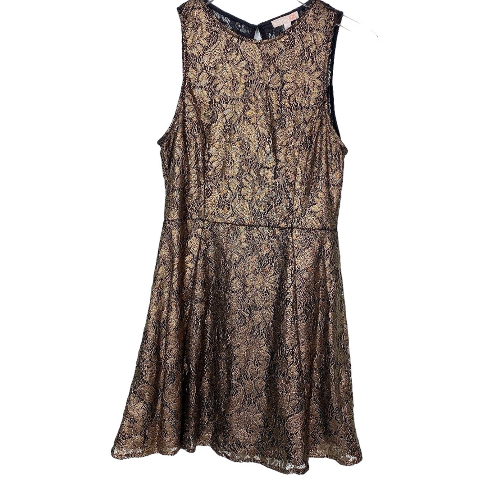 Gianni Bini metallic gold lace & black evening cocktail DRESS size SMALL new $69