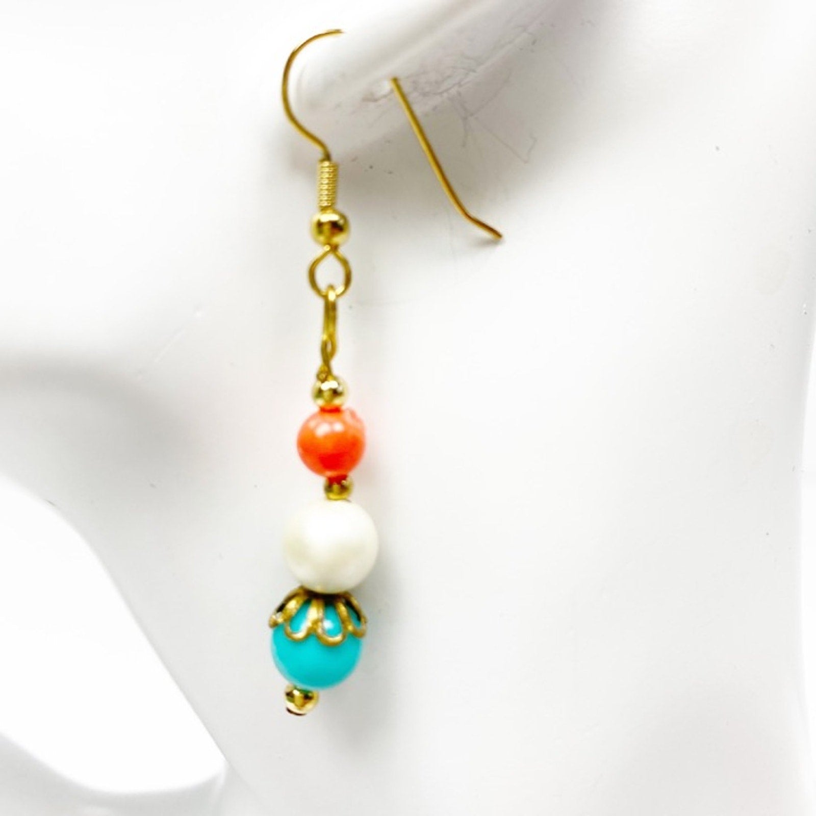 handmade orange white blue beaded EARRINGS jewelry NEW vintage beads