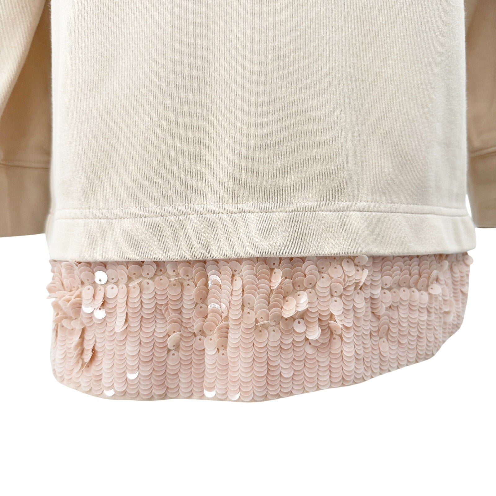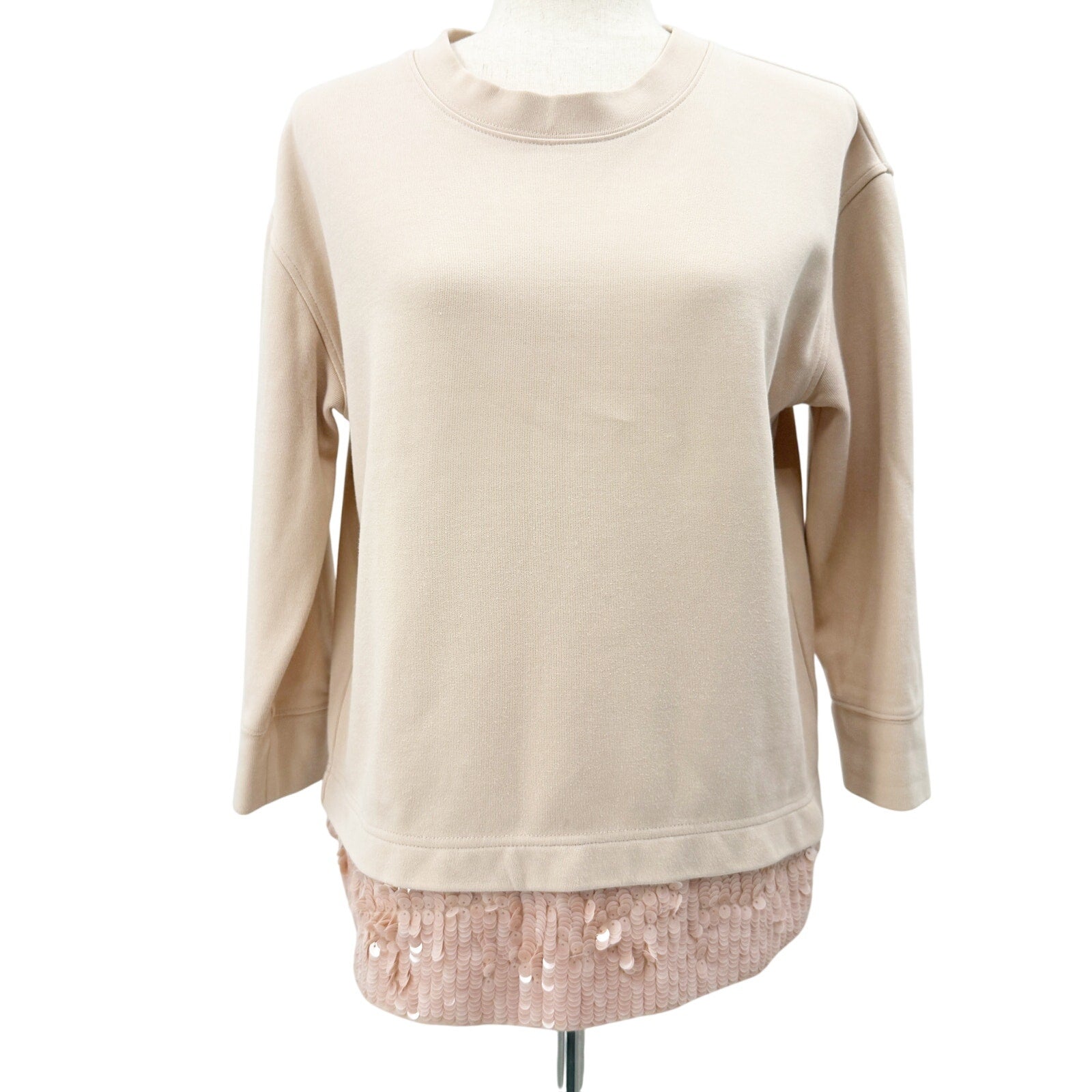 J.Crew pale pink opaque sequins hem Top women's SMALL sweatshirt 3/4 sleeves