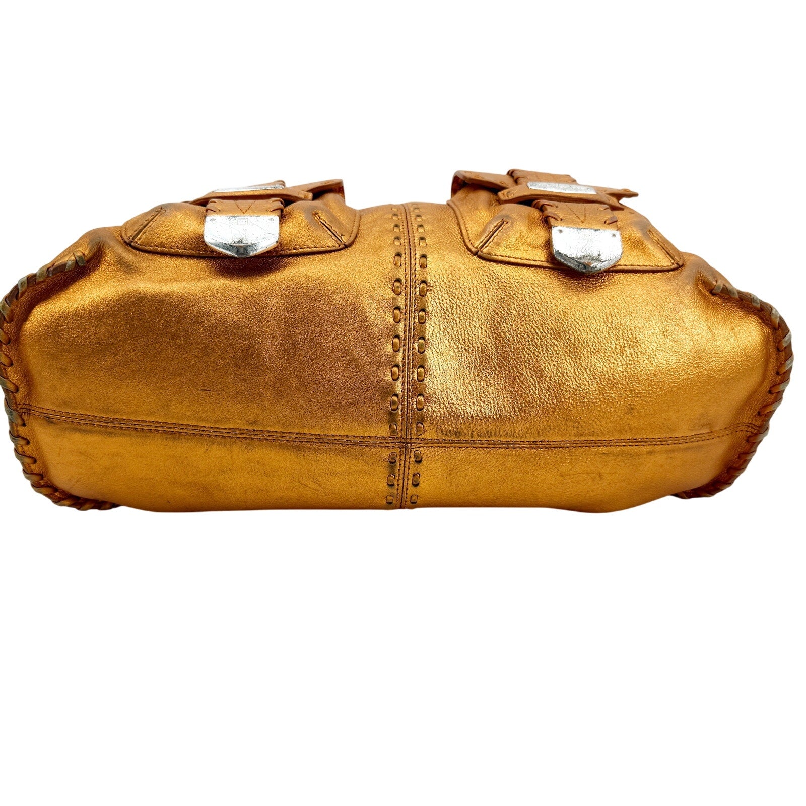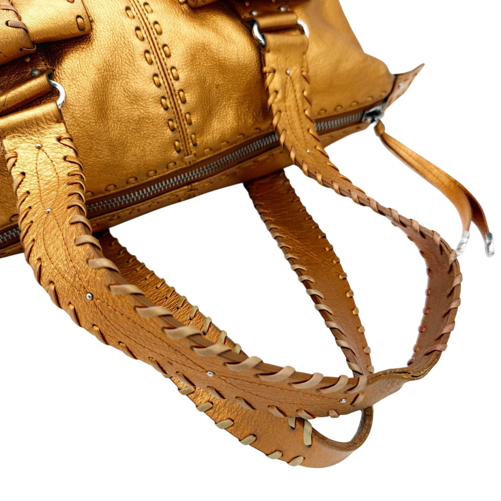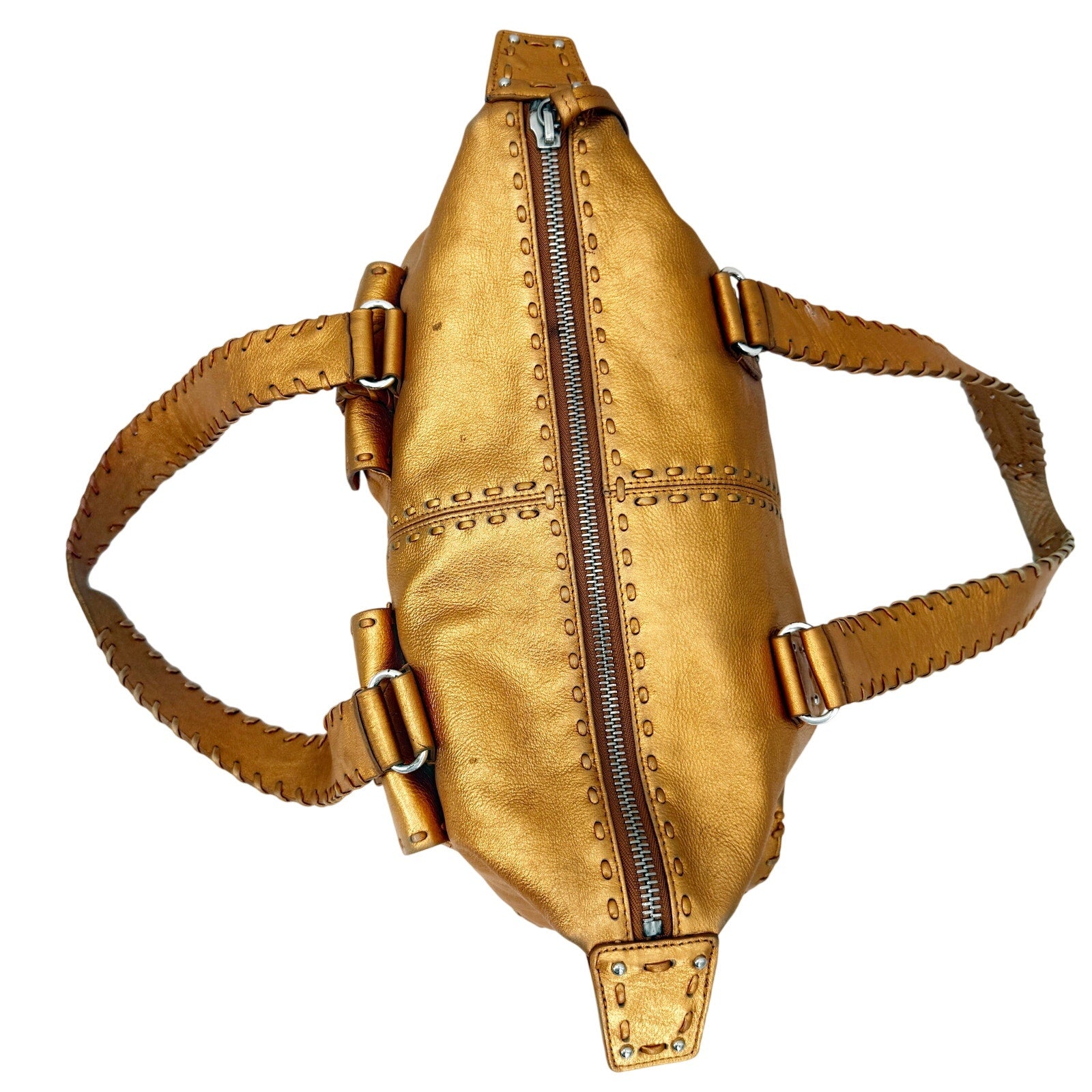 Michael Kors metallic orange leather whipstitch HANDBAG bag top handle purse