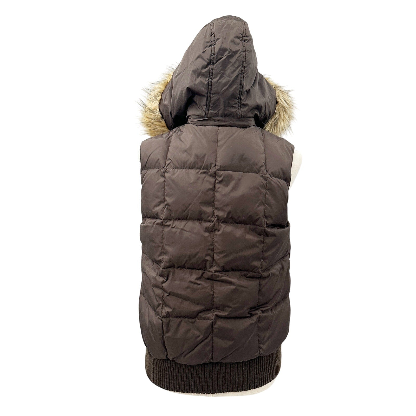 Old Navy Maternity brown puffer VEST faux fur hood size SMALL