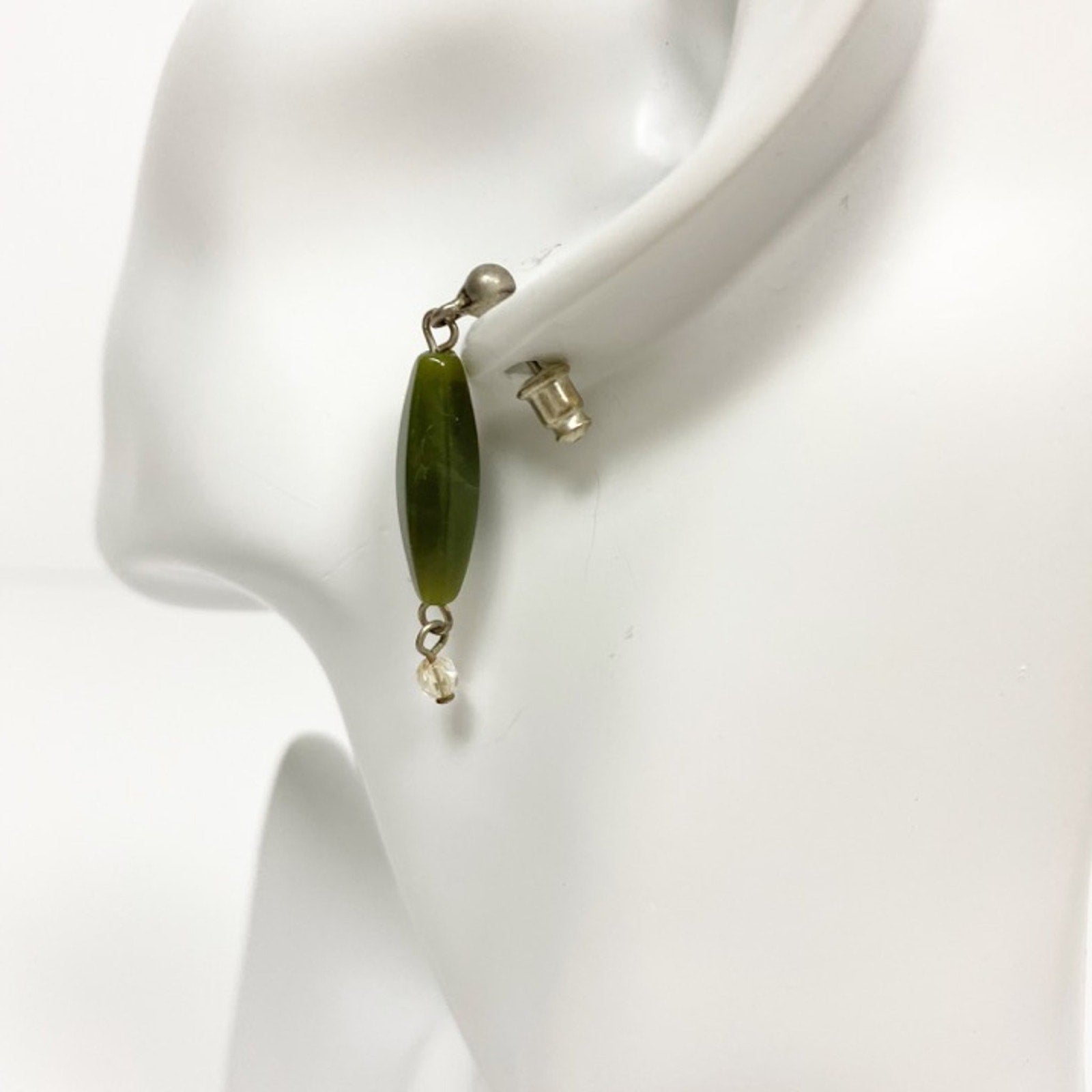 olive green & clear beaded dangle EARRINGS fashion jewelry