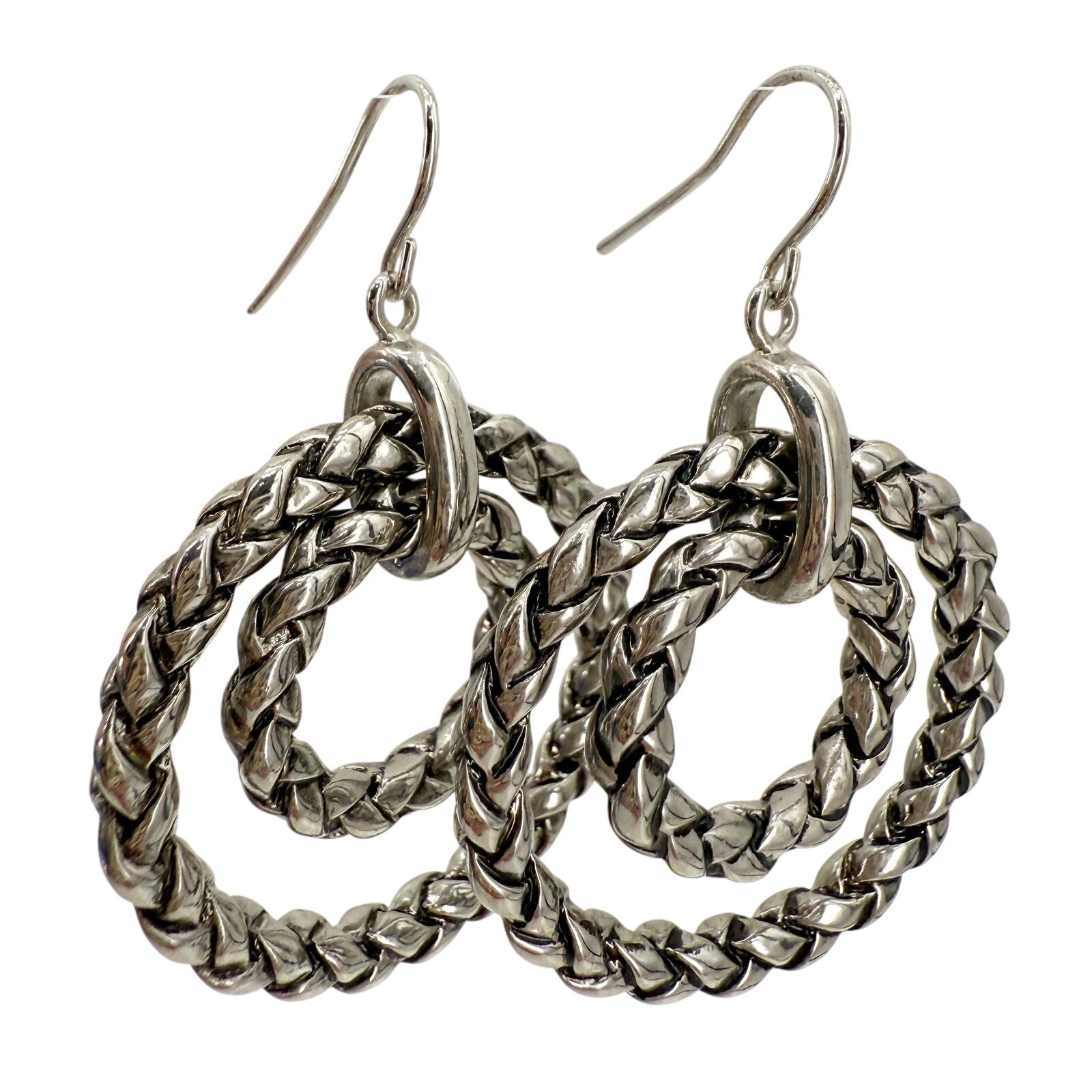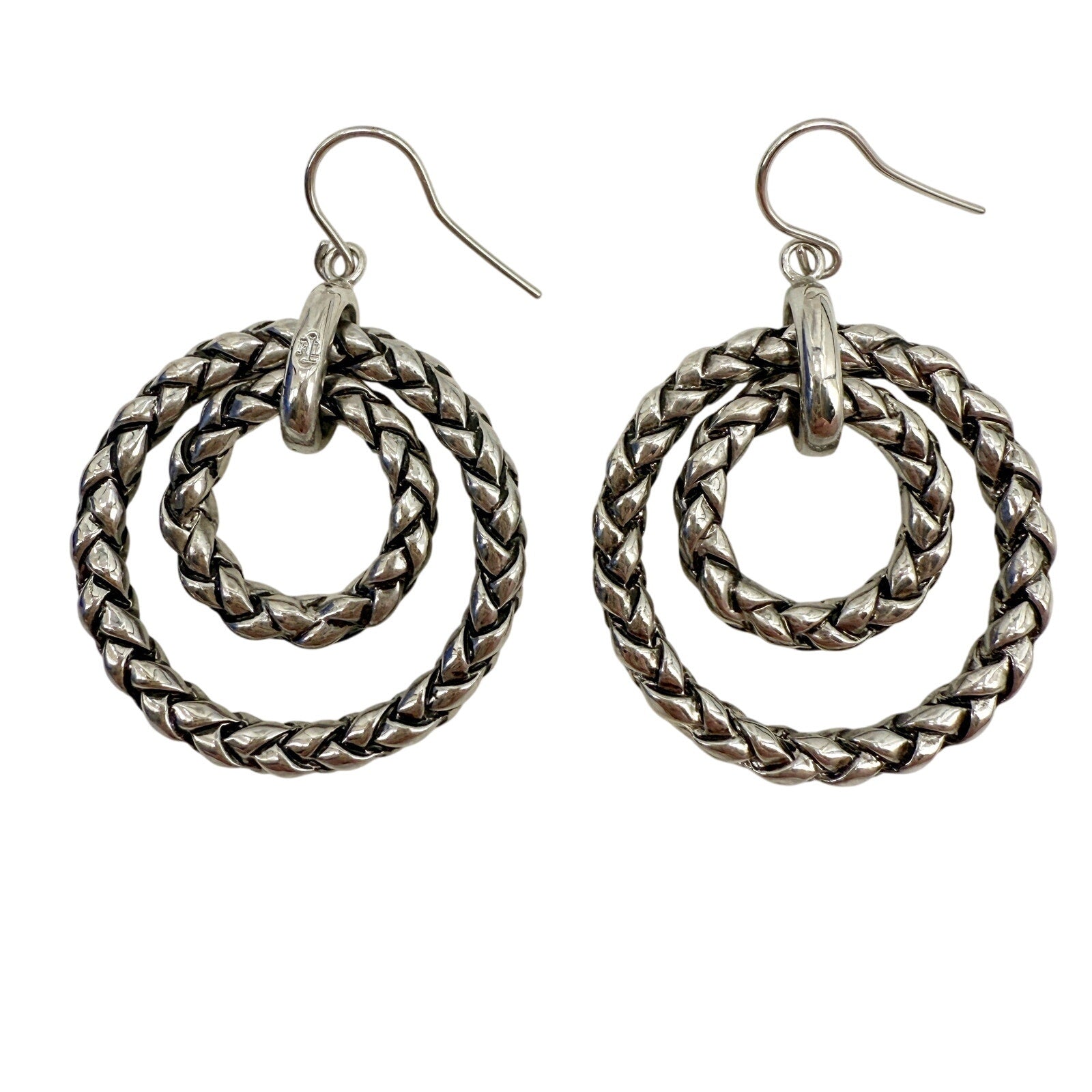 Ralph Lauren RLL silver metal Double Hoop Earrings woven braid rope texture