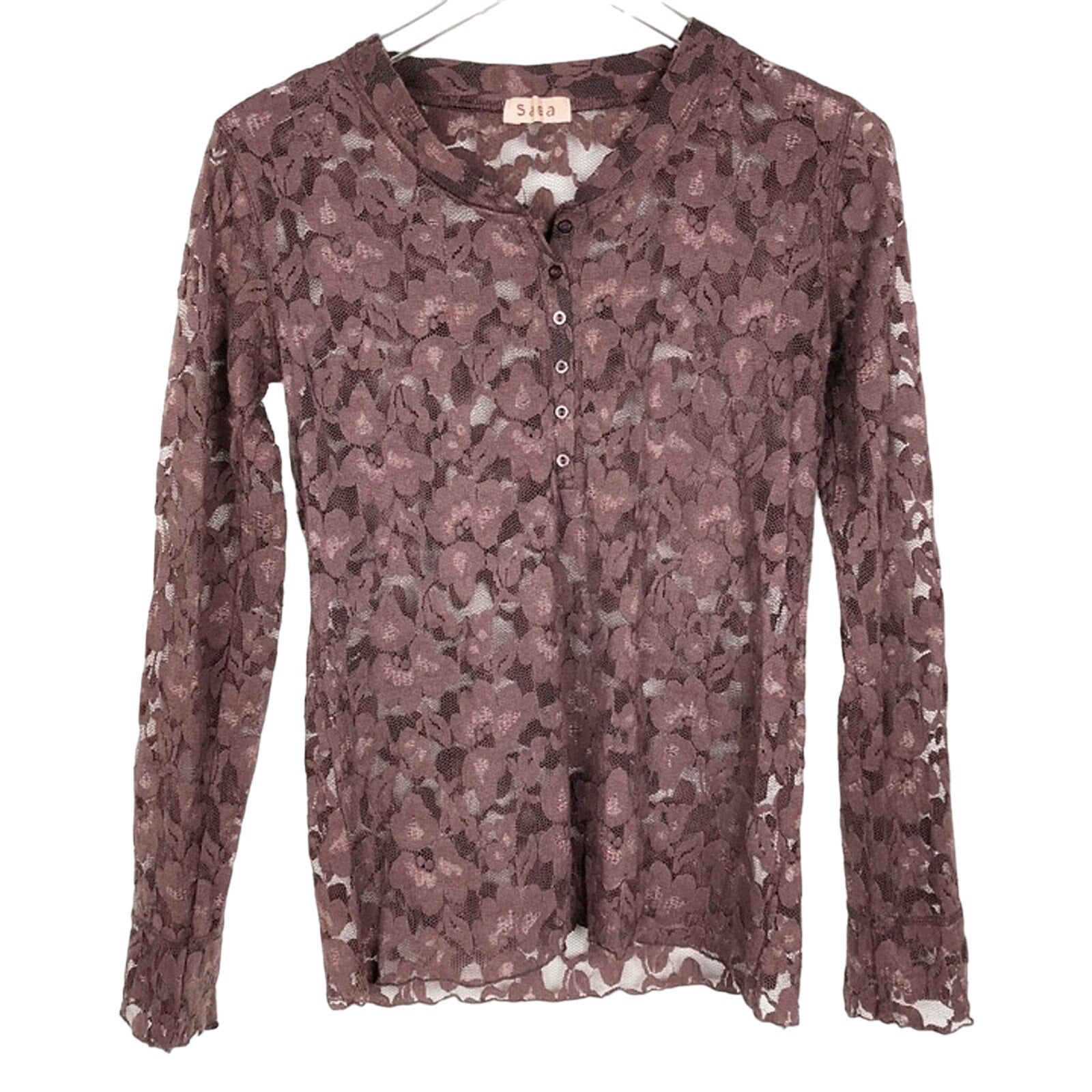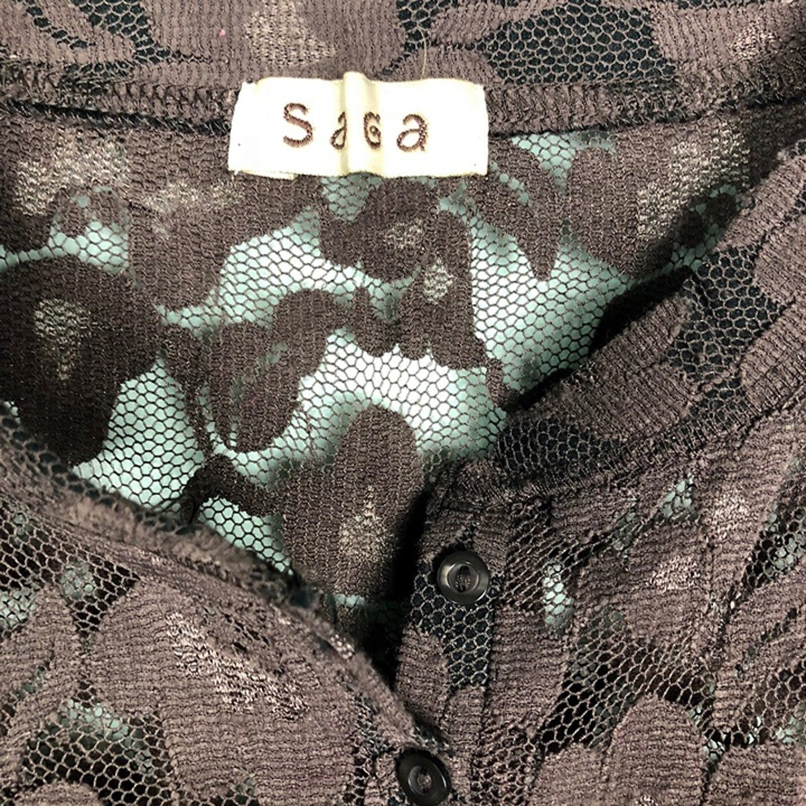 SAGA dark brown LACE sheer blouse TOP long sleeves women's S small