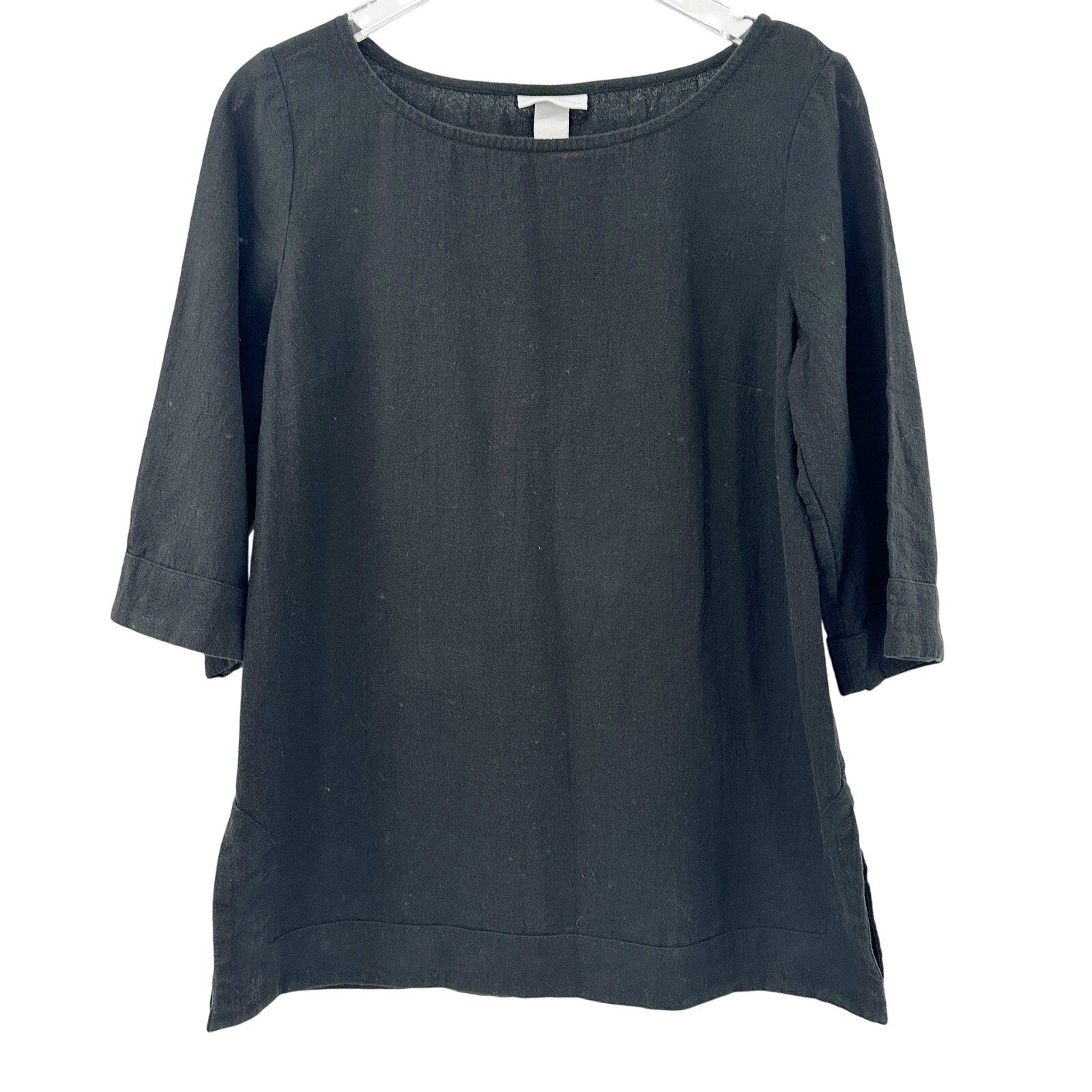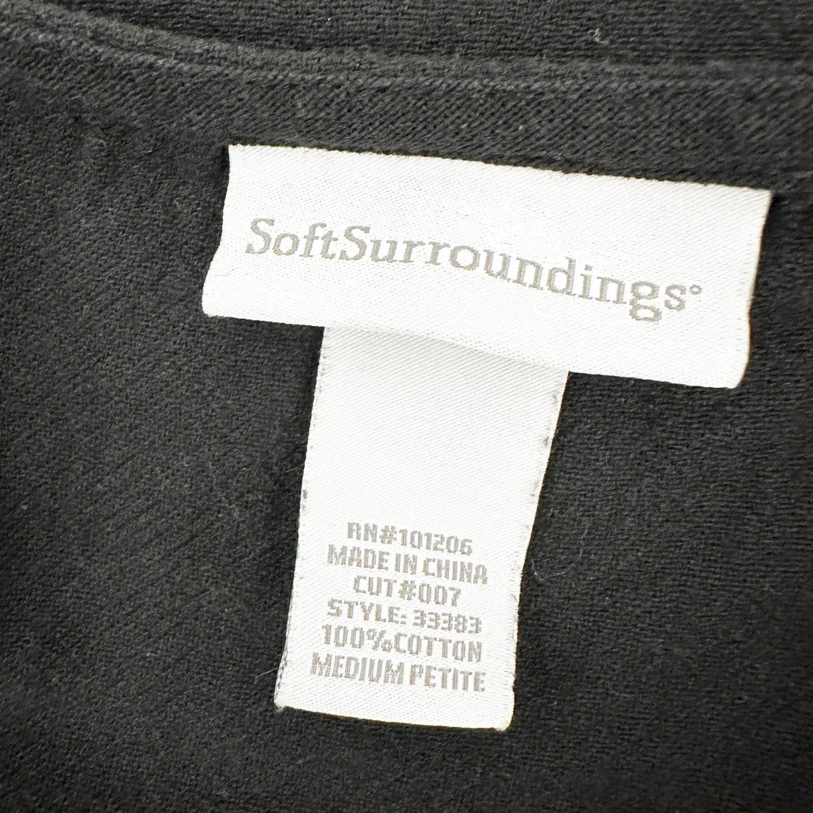 Soft Surroundings solid black Tunic Top 3/4 sleeves women's Medium Petite MP