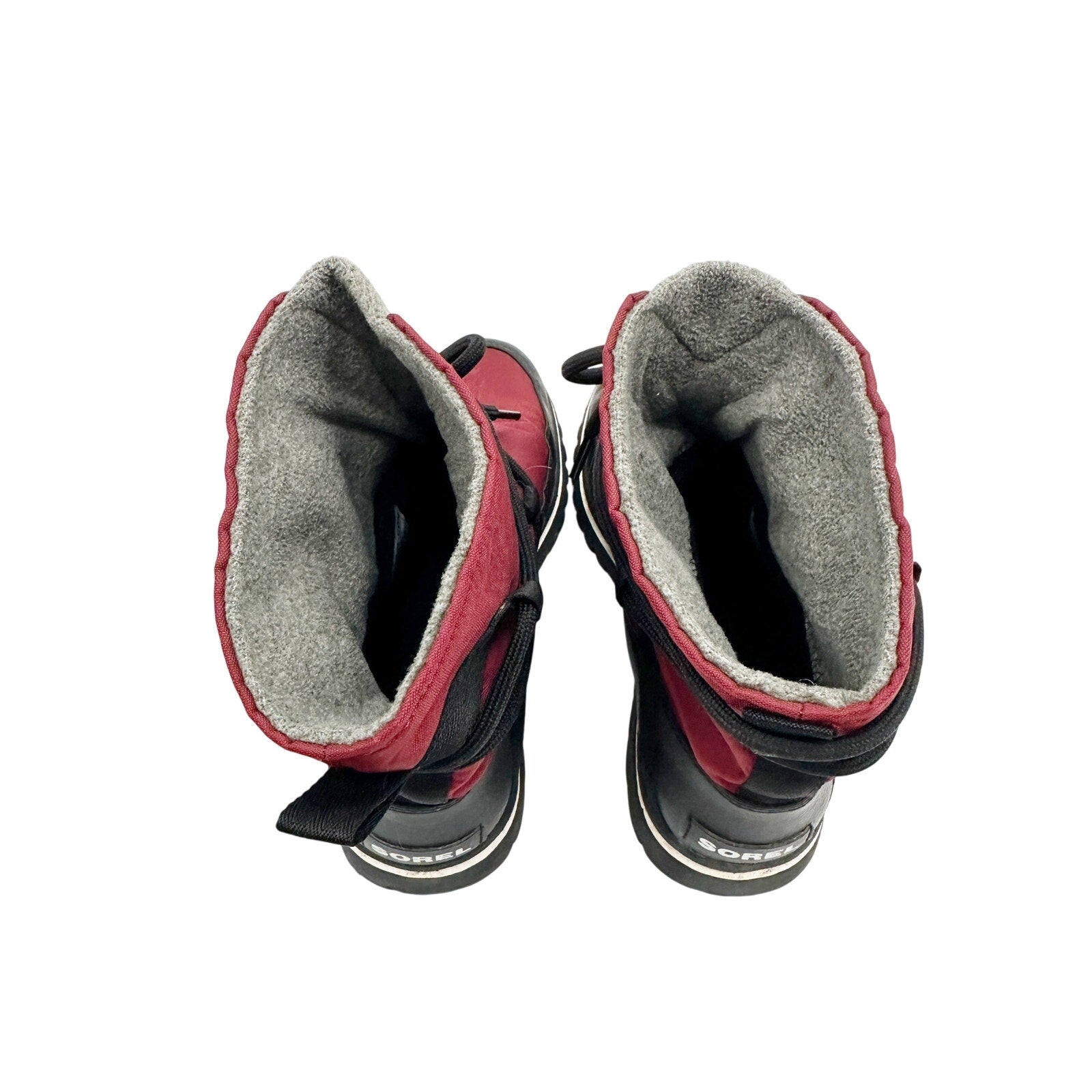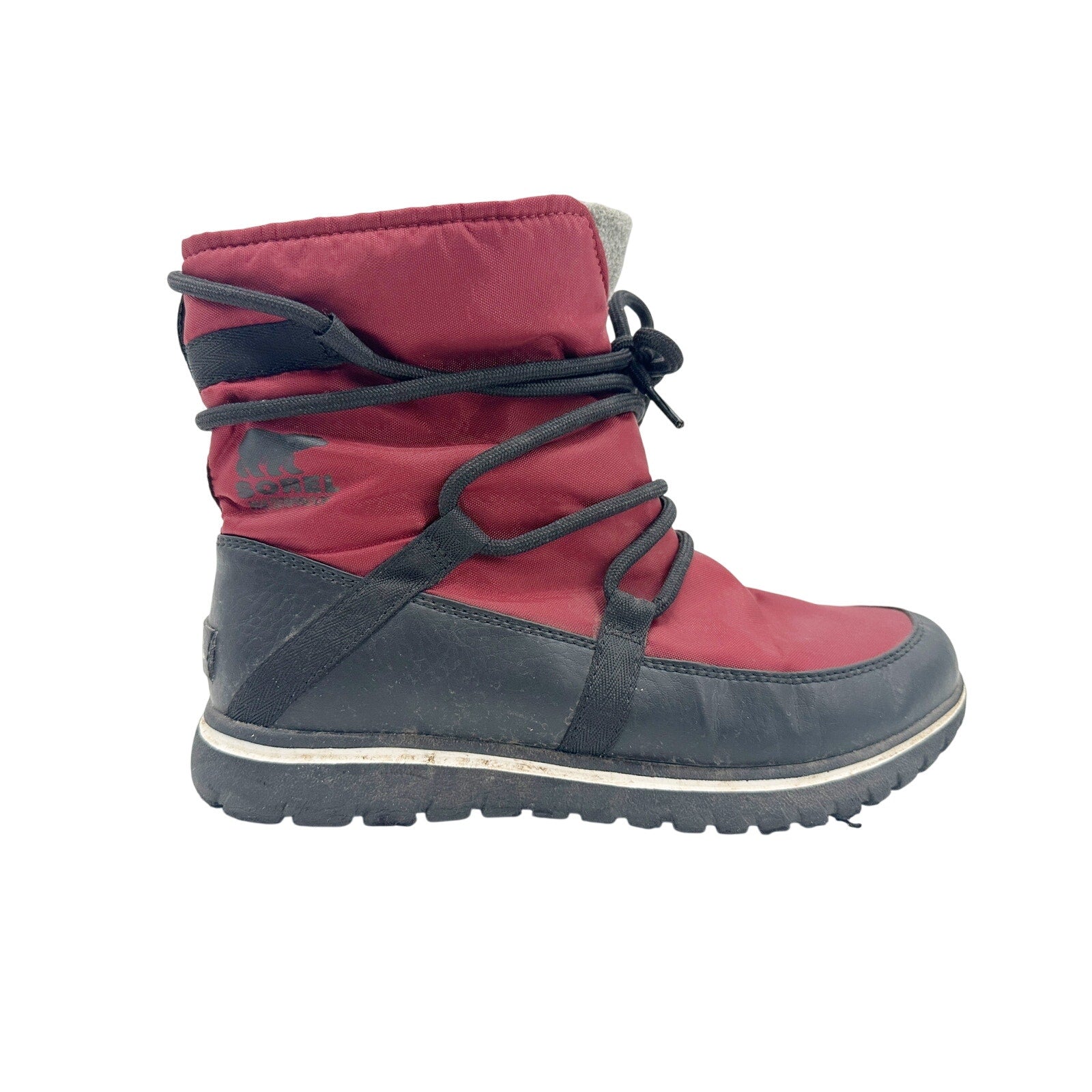 Sorel red & black Ankle Winter Boots women's 7 waterproof slip-on shoes w/ tie