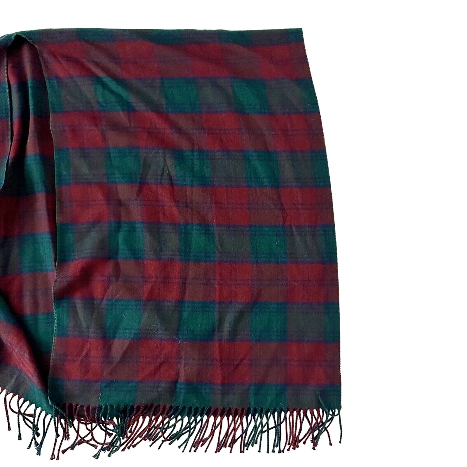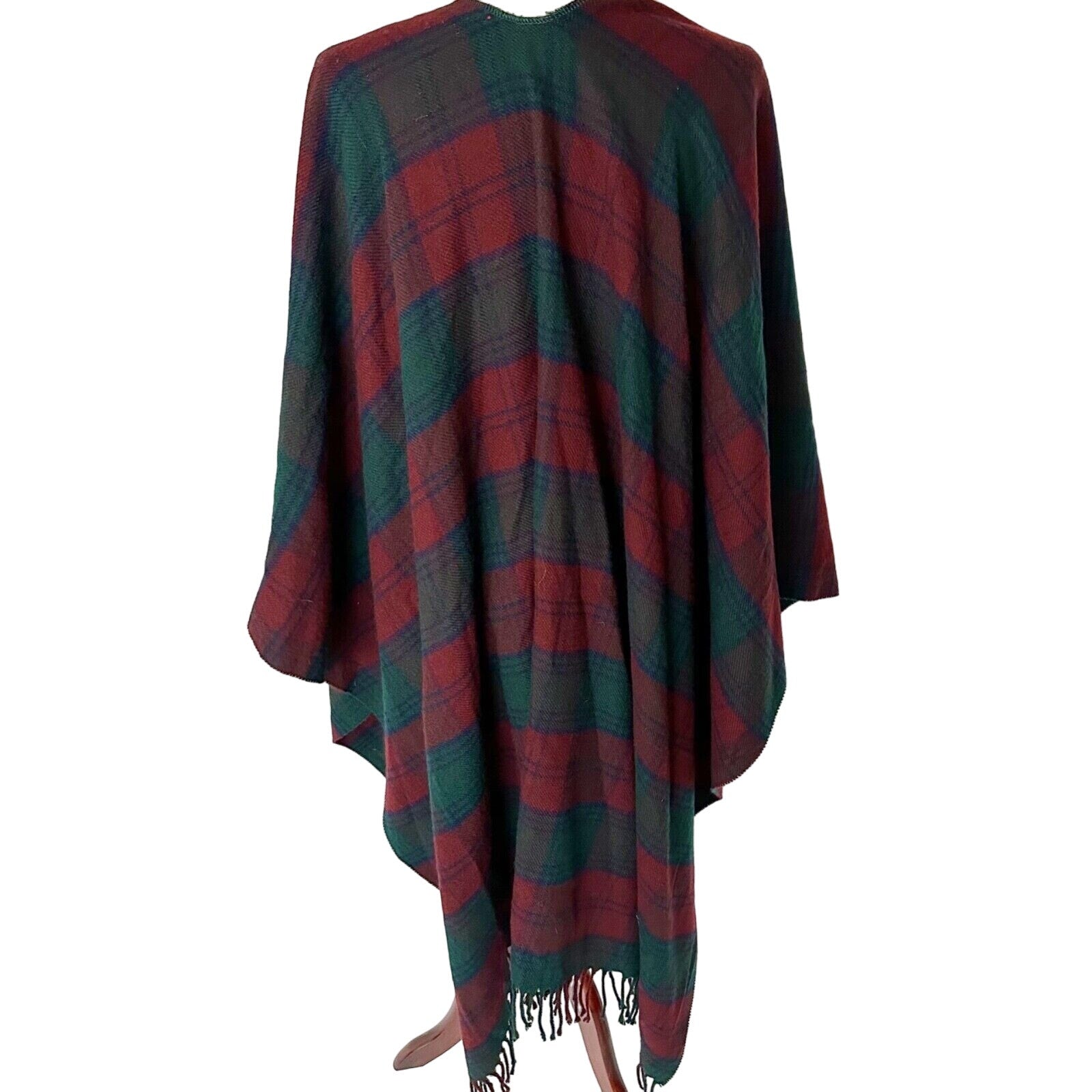 Tie Rack green red blue plaid fringe RUANA open front poncho OS made in Italy