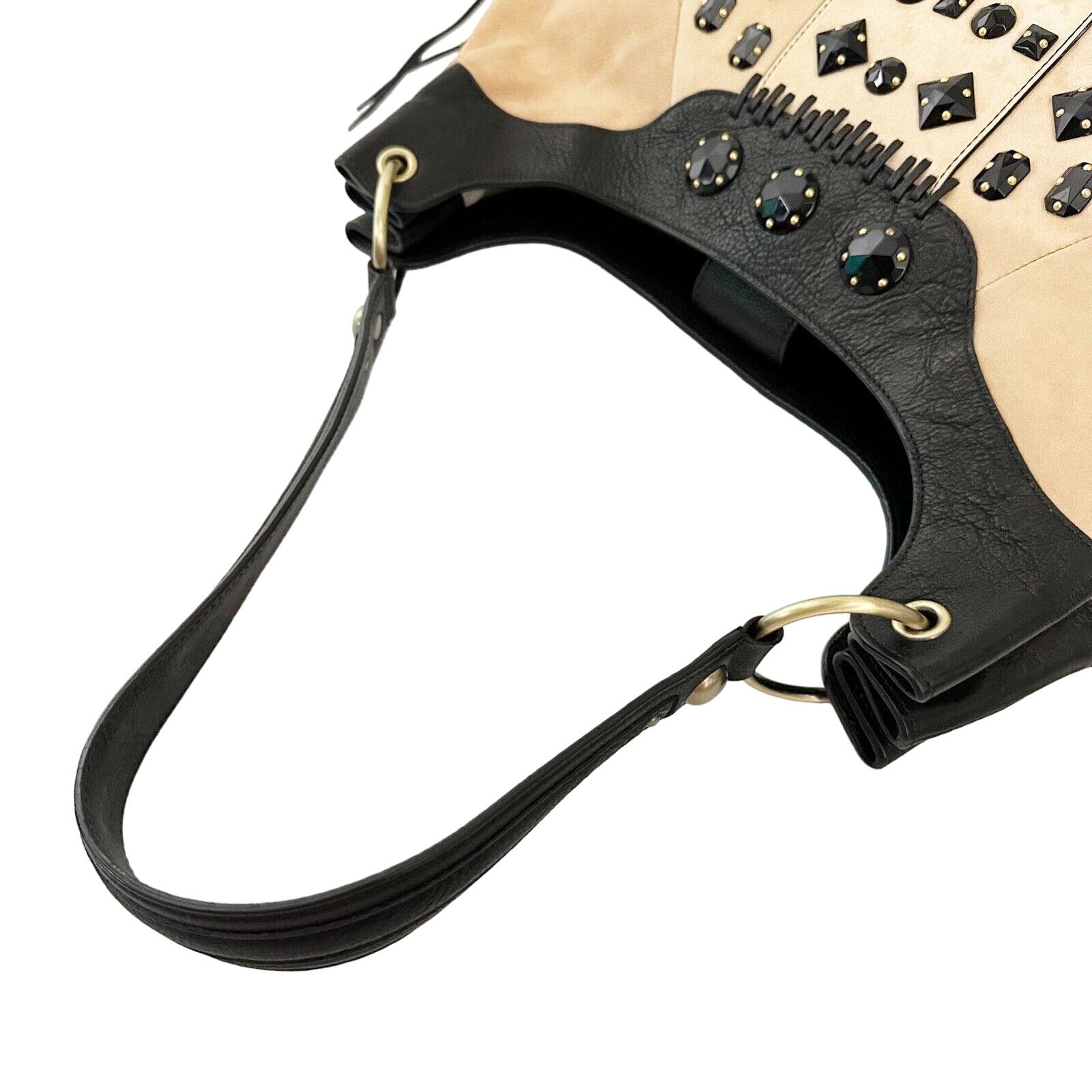 Tre Vero black & beige leather opaque beaded HANDBAG shoulder purse bag