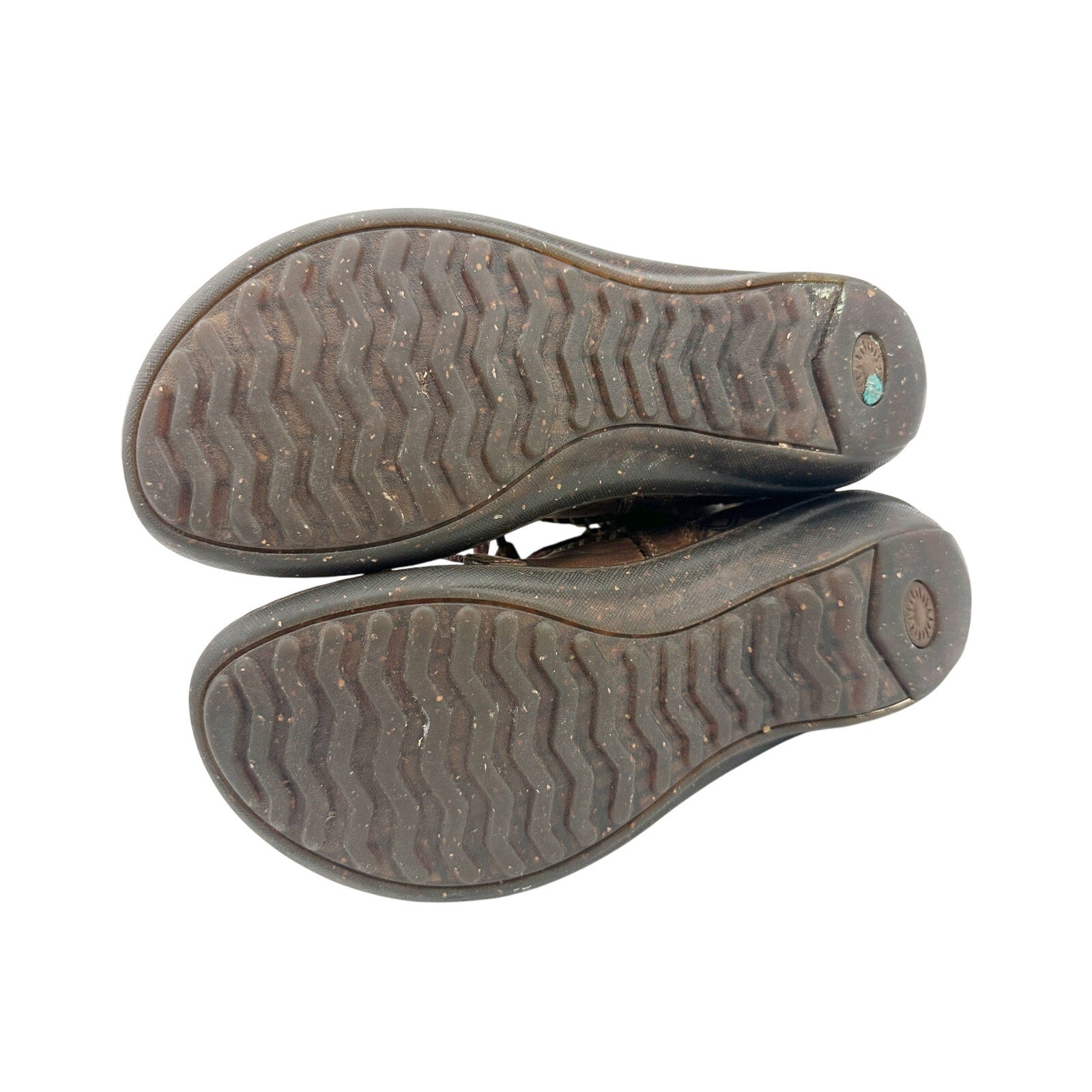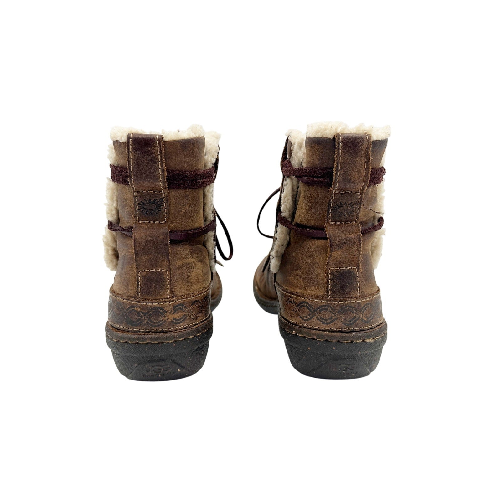 UGG brown leather wraparound tie ankle BOOTS women's 7 winter shoes sheepskin
