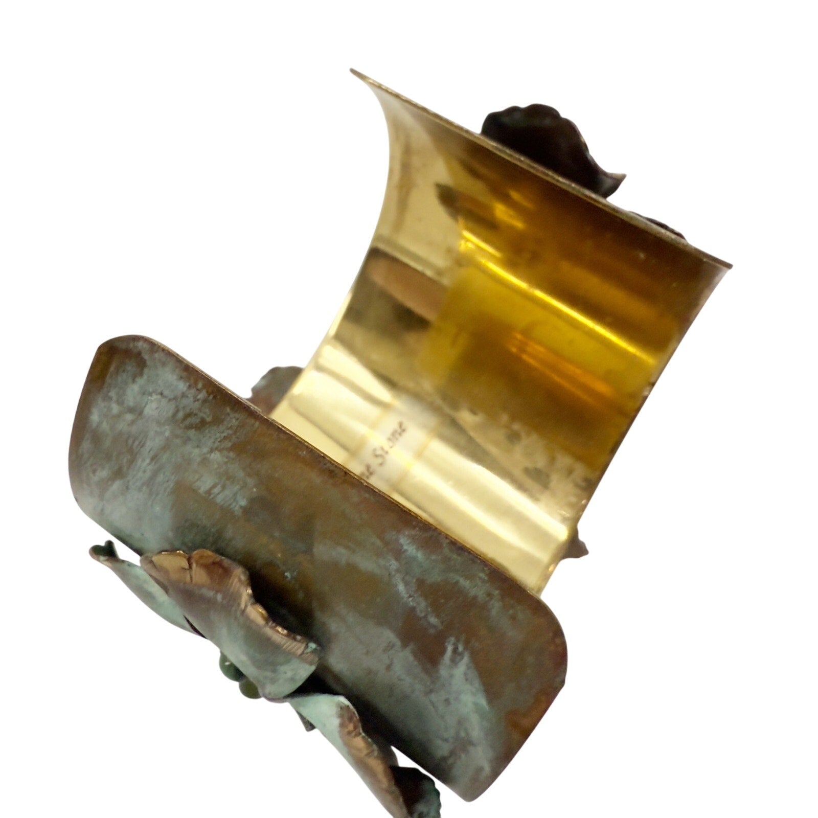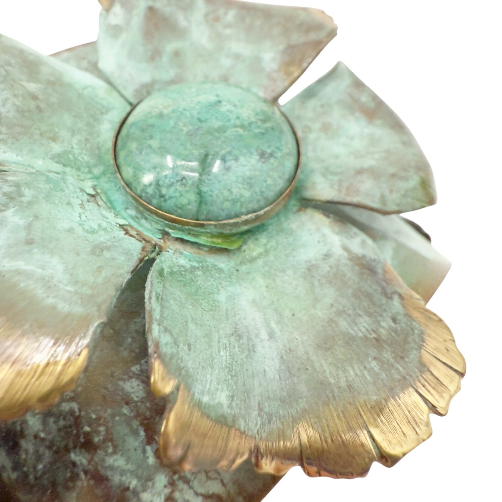 Verdigris Patina solid brass floral wide 2" Cuff Bracelet genuine stones jewelry