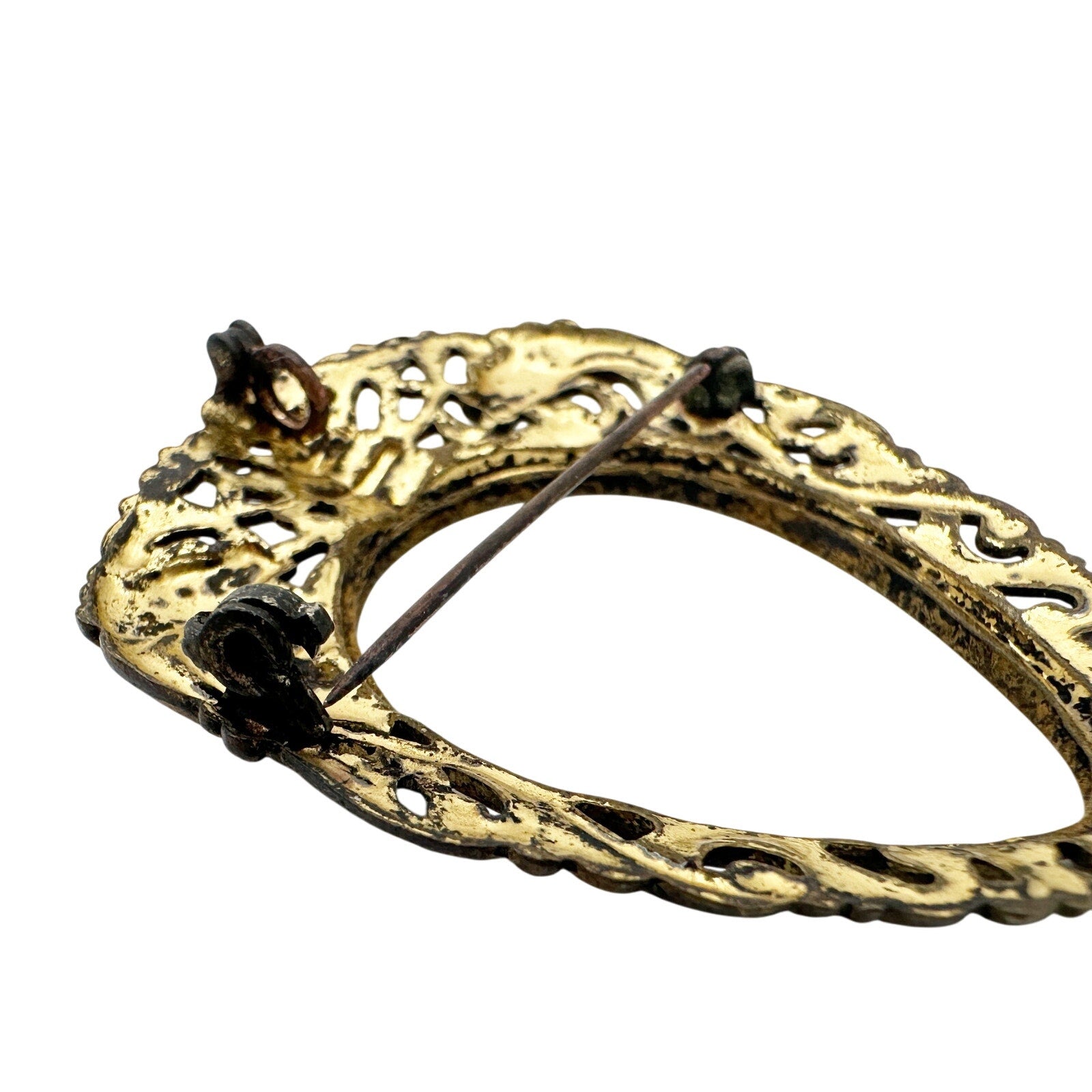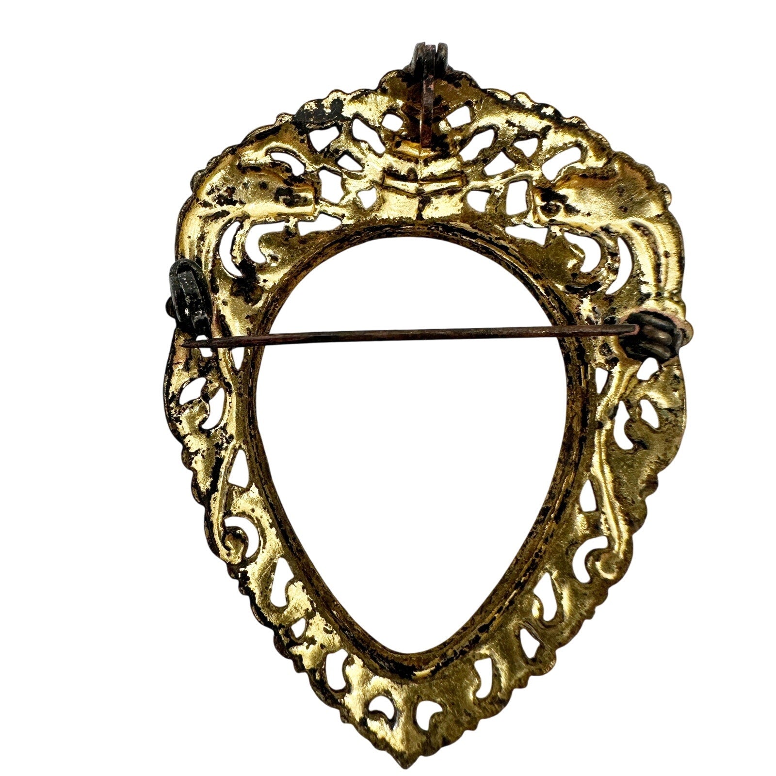 vintage antique gold metal BROOCH ornate pendant frame jewelry pin