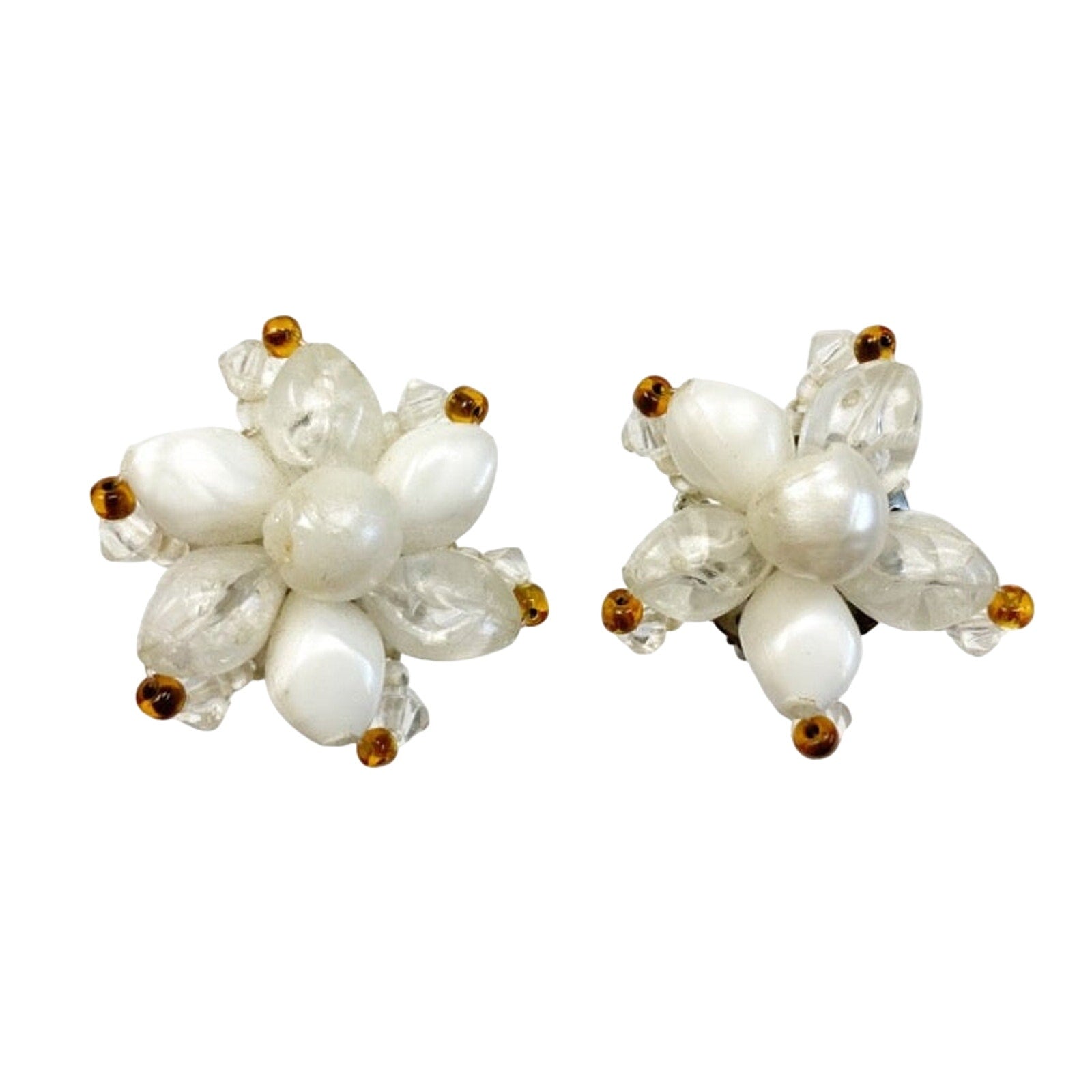 vintage Bead Cluster clip-on EARRINGS costume jewelry West Germany white beads