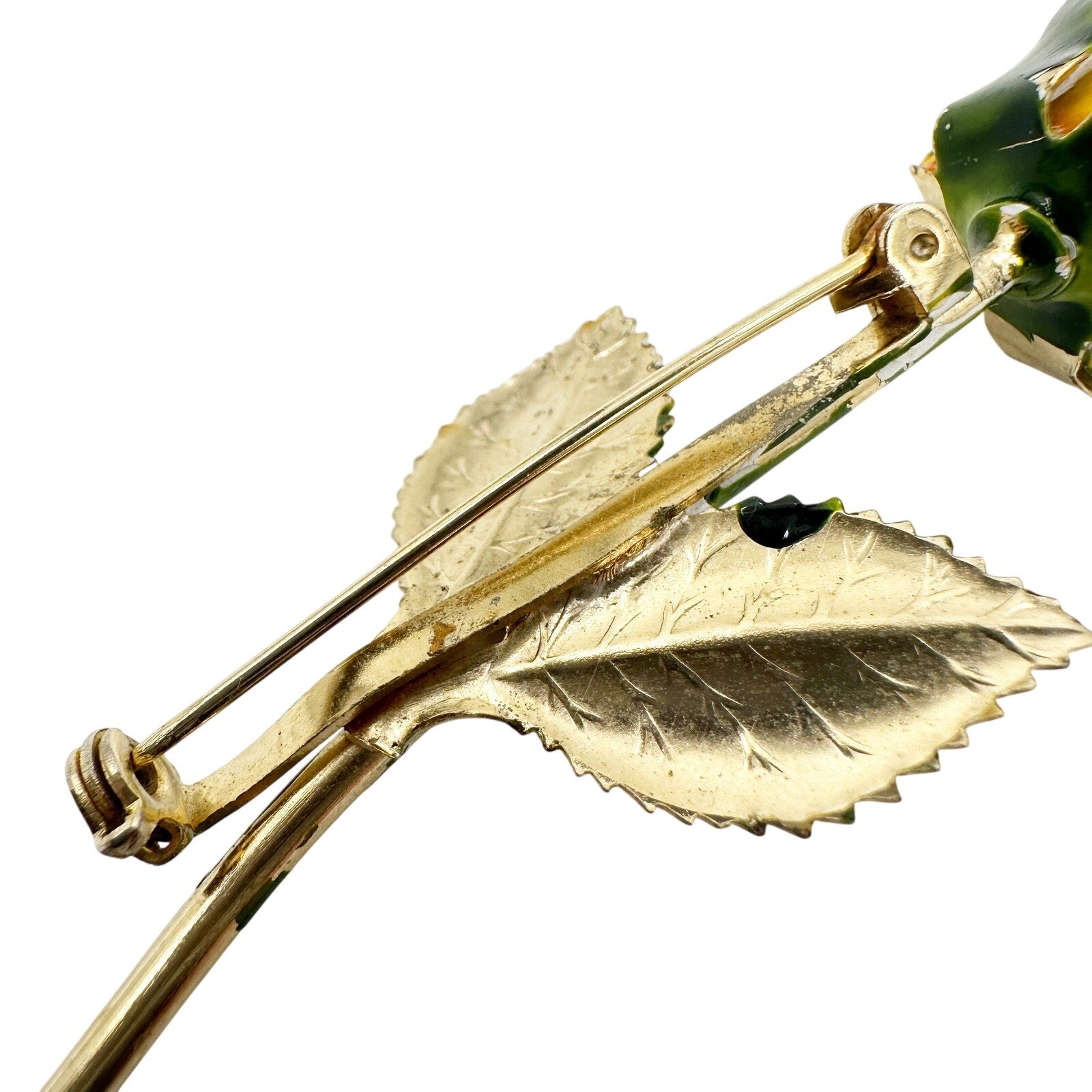 vintage long stem yellow flower BROOCH floral jewelry pin