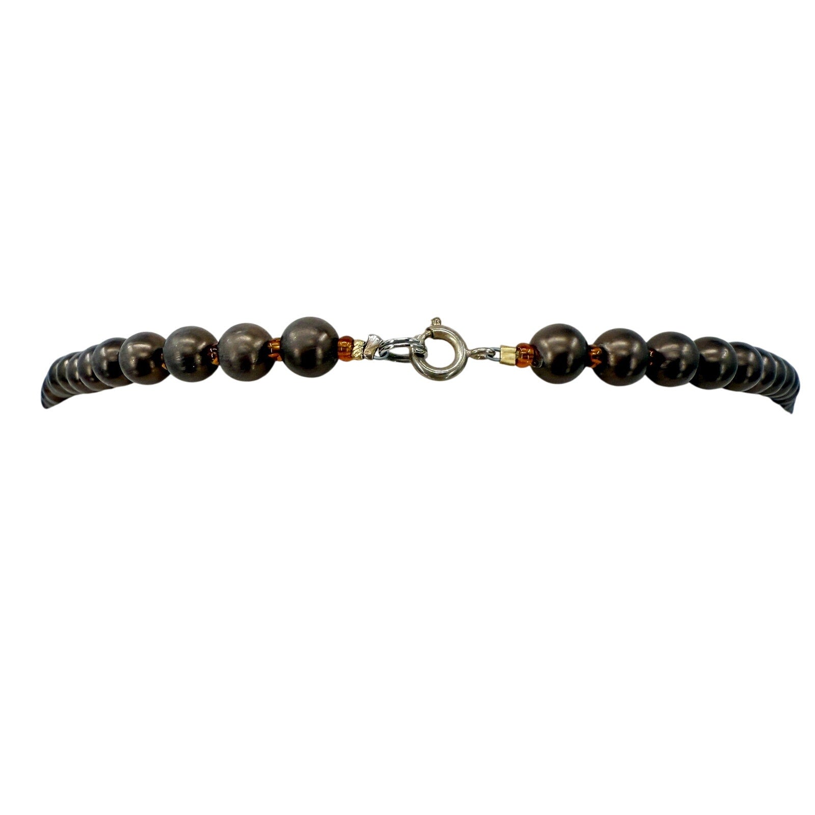 tiny translucent orange beads in between brown beads