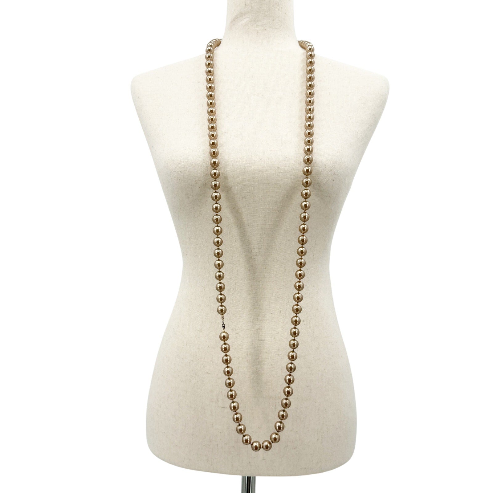 vintage long strand light bronze beads Beaded Necklace costume jewelry