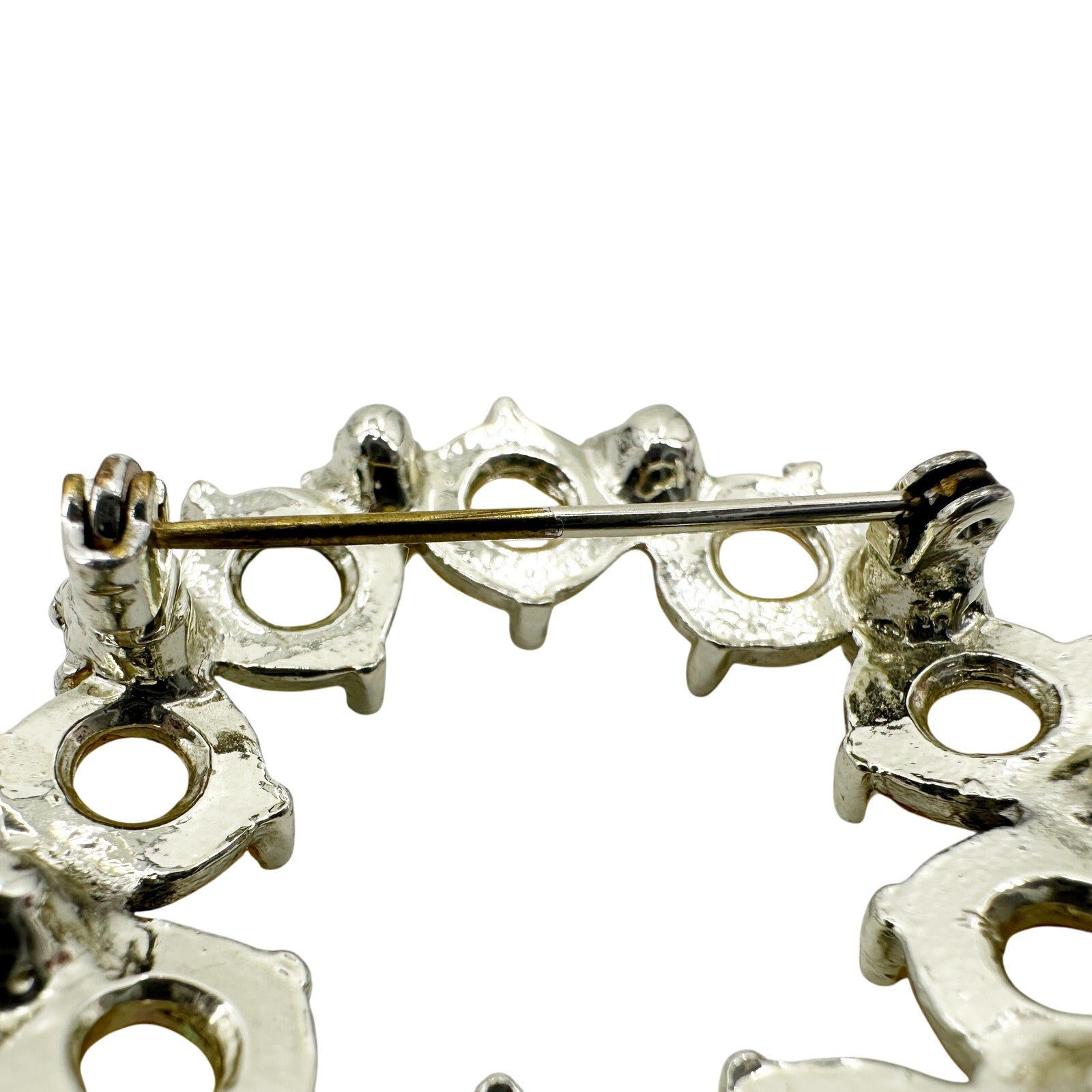 vintage silver pearlescent stones & rhinestones round BROOCH jewelry pin
