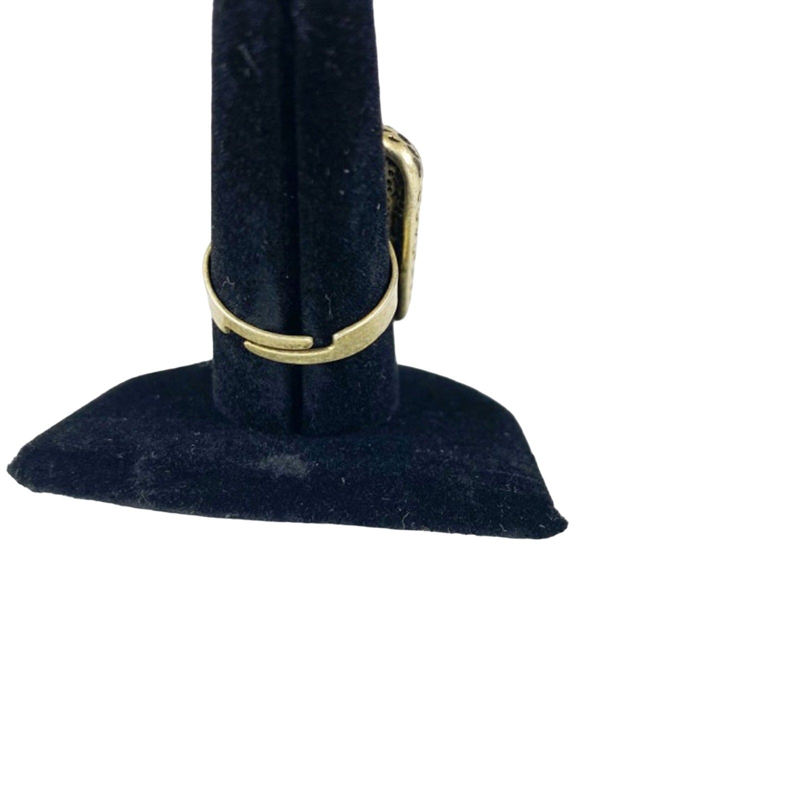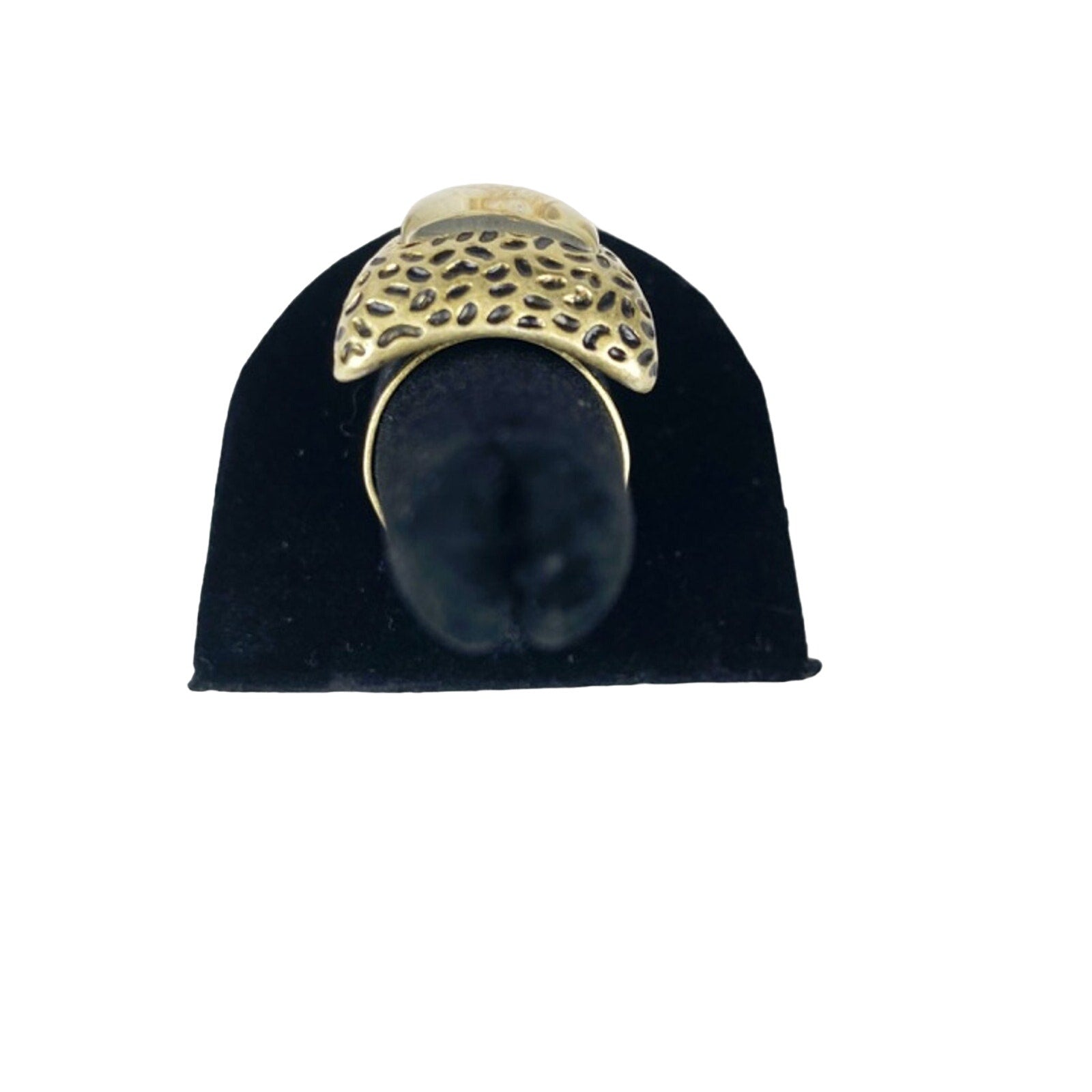 vintage square FLOWER encased in resin RING pitted gold tone metal adjustable