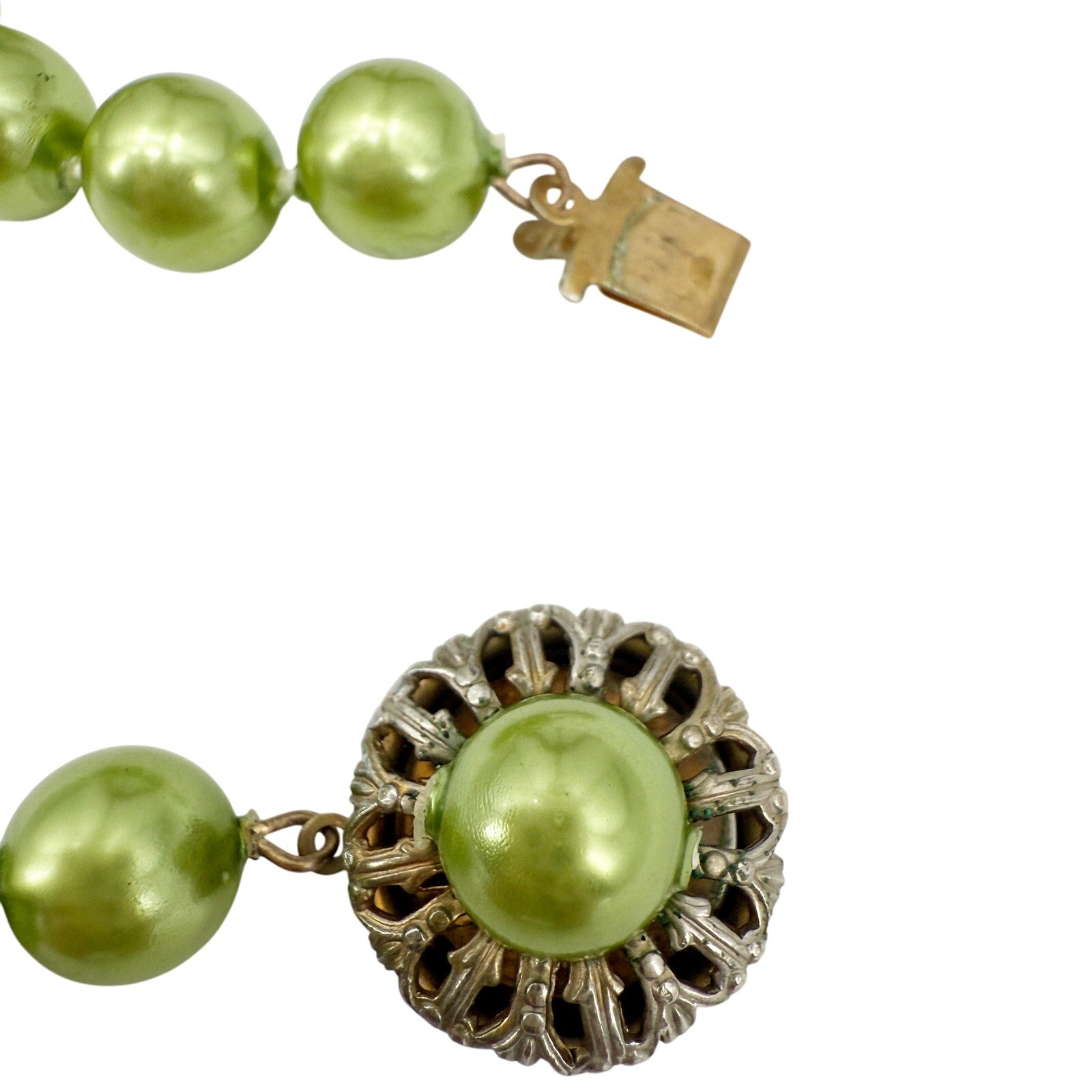 vintage strand of metallic lime green beads Beaded Necklace costume jewelry