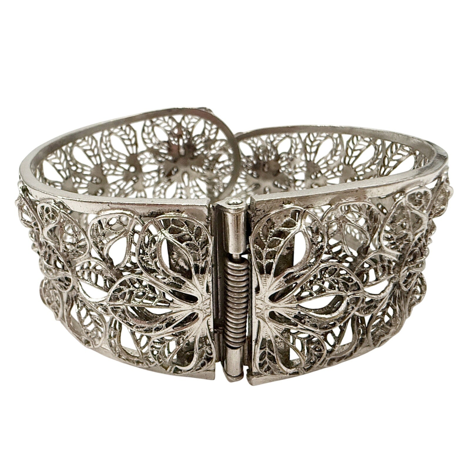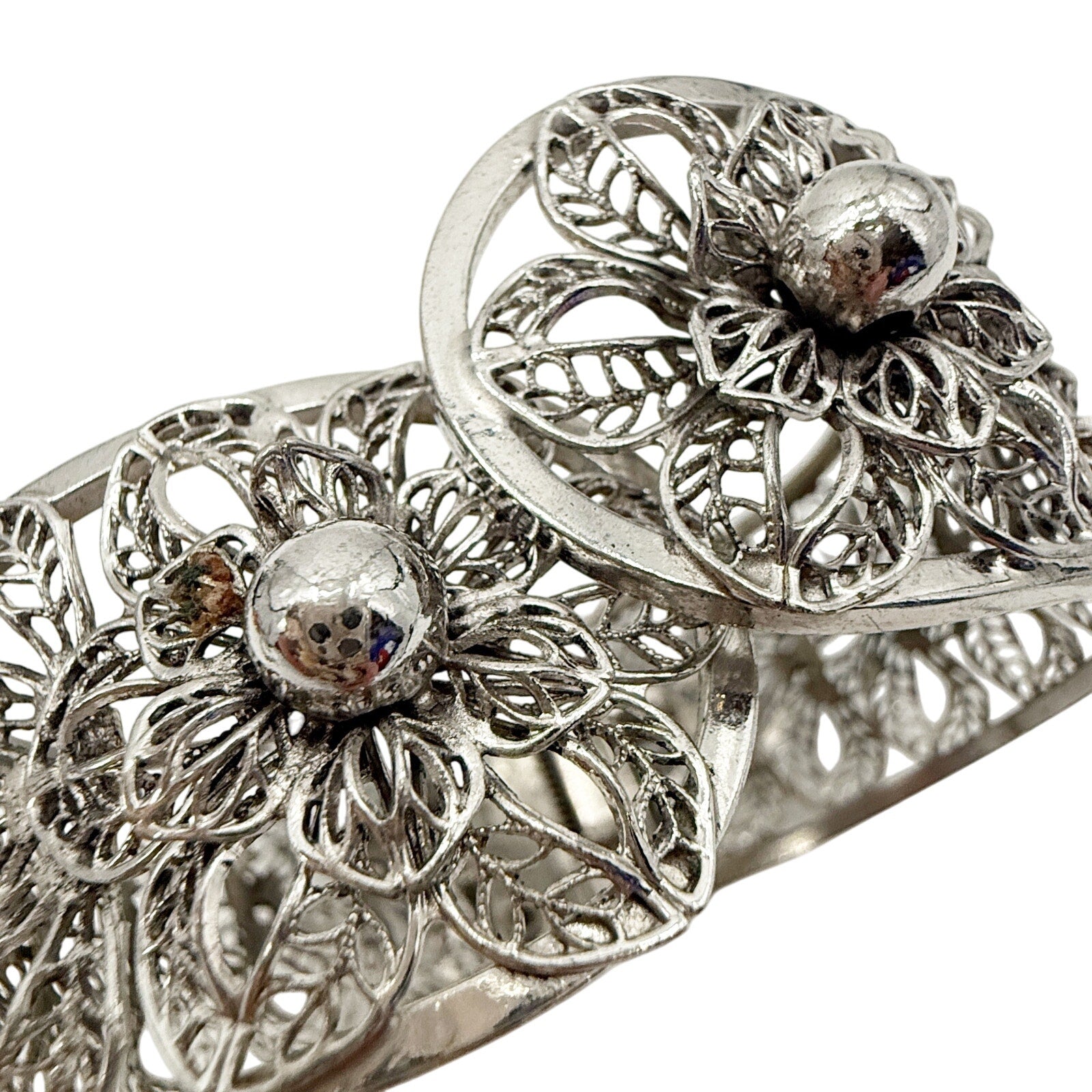 vintage Vargas Hinged floral filigree Bracelet silver toned metal flower jewelry